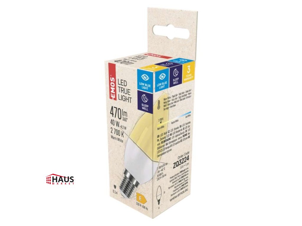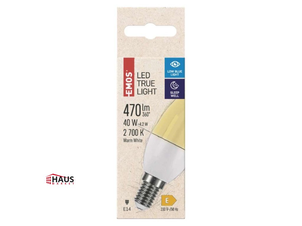 LED žiarovka True Light sviečka / E14 / 4,2 W (40 W) / 470 lm / teplá biela