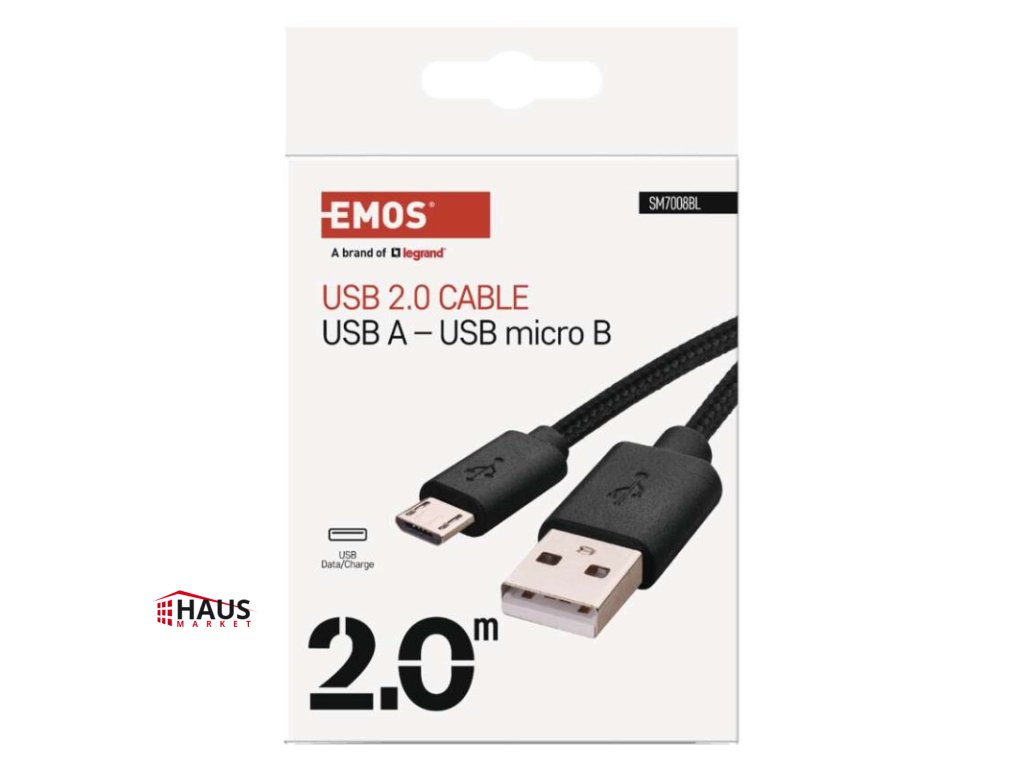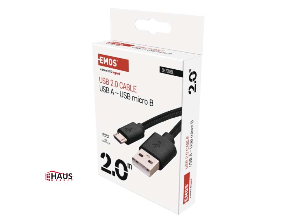 dĺžka: 2 m|farba: čierna|konektory: A vidlica – micro B vidlica|materiál: PVC + textil|maximálny prúd: 2 A|maximálny výkon: 10 W|použitie: nabíjanie/dáta|predajný obal: 1 ks, krabička|rýchlosť prenosu dát: 480 Mbit/s (High Speed)|USB verzia: 2.0Dodatočné parametre