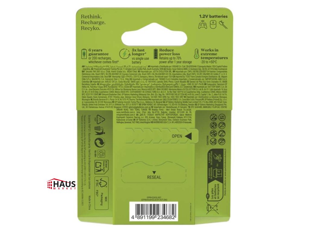 chemické zloženie: NiMH|hmotnosť: 12 g|kapacita: 800 mAh|kategória/rada: Rechargeable|max. skladovateľnosť: neuvádza sa|možnosť nabíjania: áno|napätie: 1,2 V|počet nabíjacích cyklov: viac ako 200|predajný obal: 6 ks, papierová krabička|prevádzková teplota: -20 °C až +50 °C|rozmer: 10,5 × 44,5 mm|typové označenie: HR03 (mikrotužka, AAA)|veľkosť batérie: AAA|značka: GPDodatočné parametre
