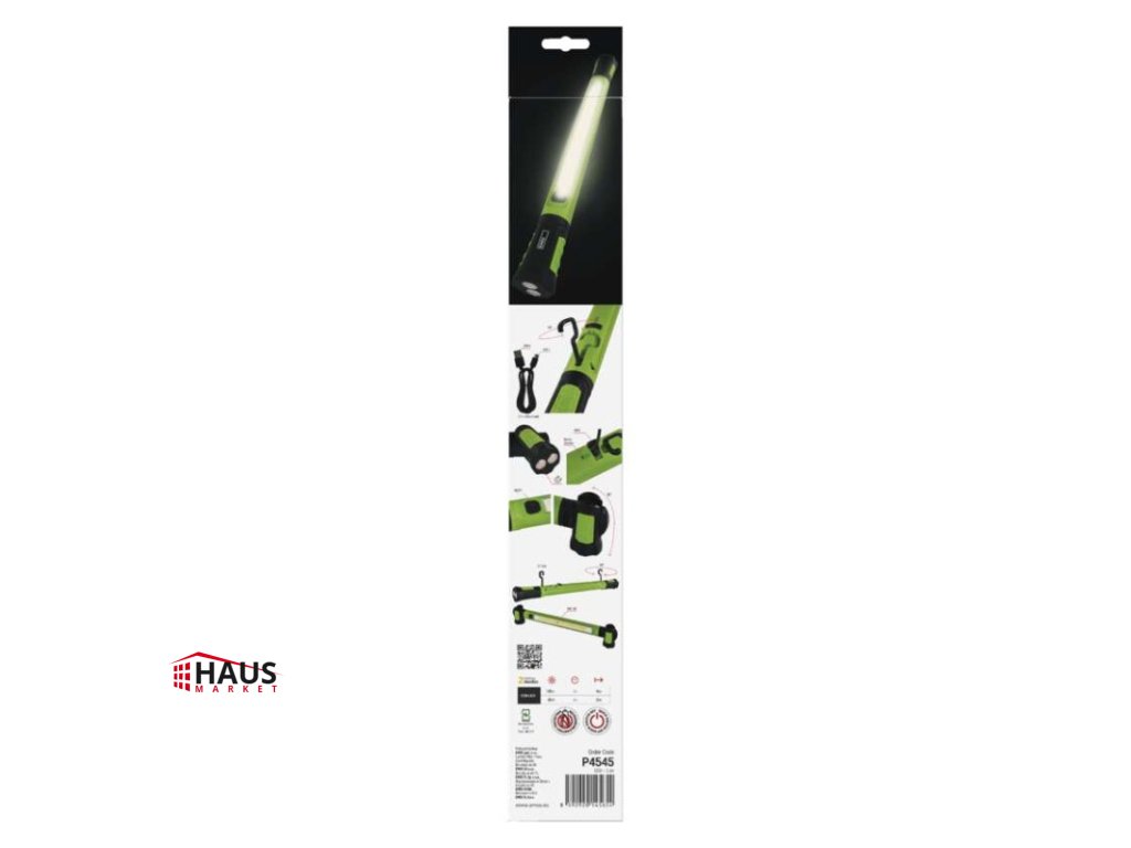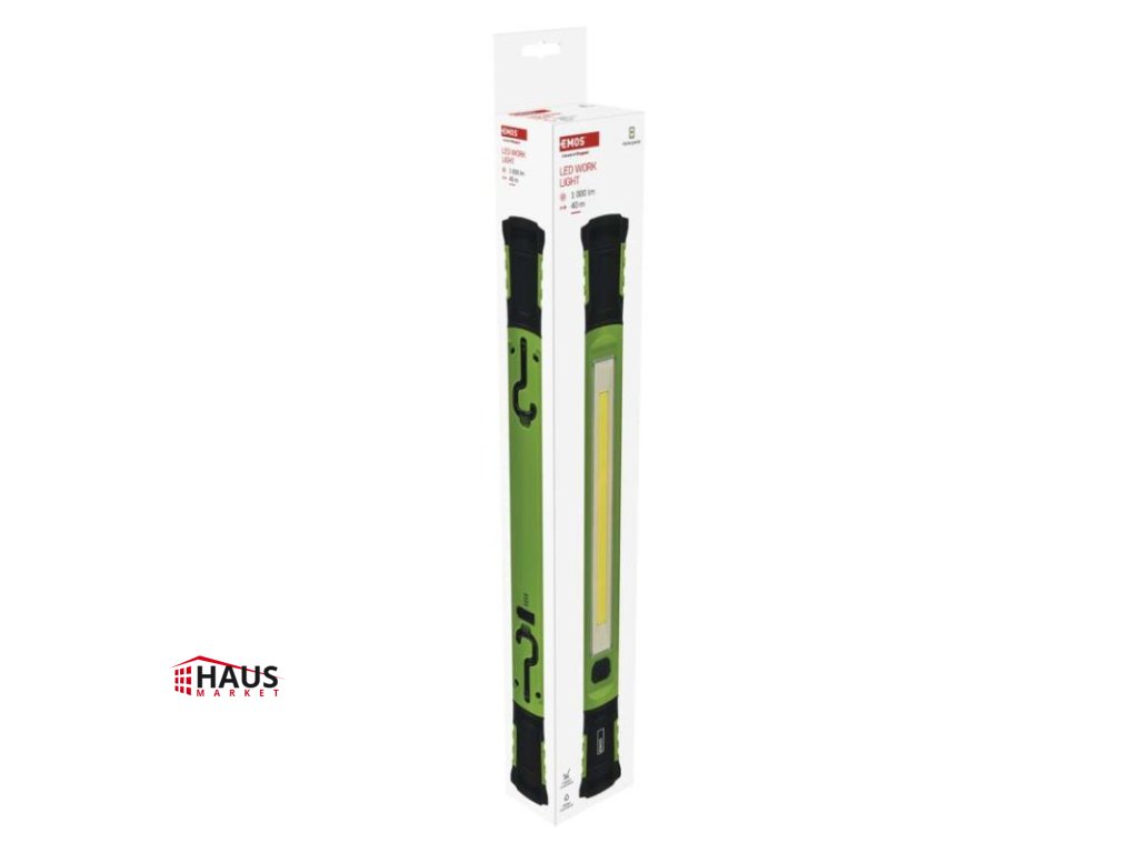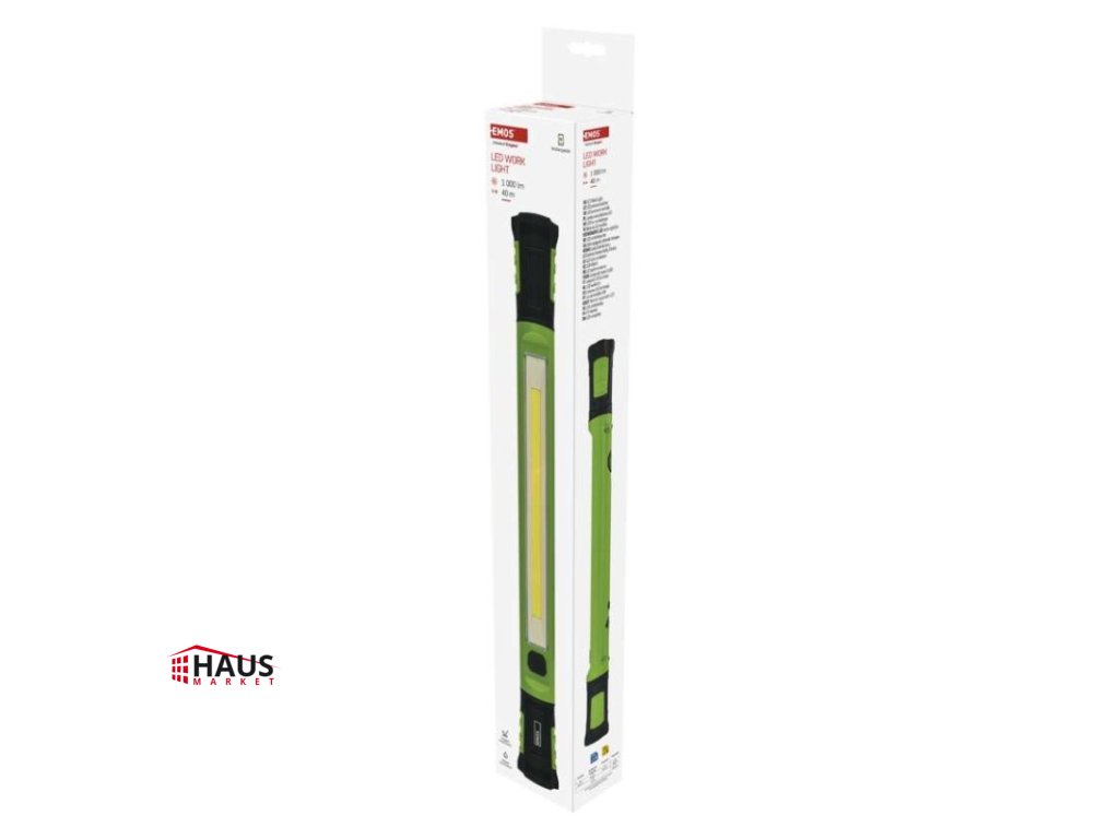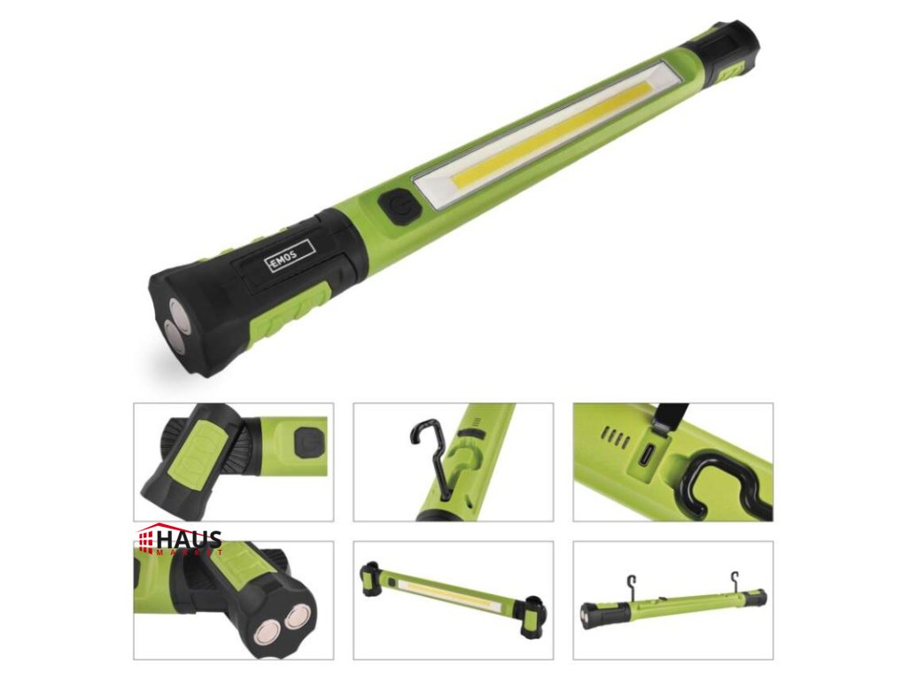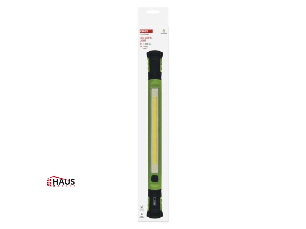 batérie súčasťou balenia: áno|doba nabíjania: 5 h|doba svietenia: 2–6 h|doba svietenia detail: COB LED 100 % – 2 h, COB LED 40 % – 6 h|dosvit: COB LED 100 % – 40 m, COB LED 40 % – 25 m|farba: zeleno-čierná|fokus: nie|hmotnosť: 490 g|LED indikácia nabíjania: áno|LED indikácia stavu akumulátora: áno|materiál: ABS plast|maximálny dosvit: 40 m|maximálny svetelný tok: 1 000 lm|nabíjací: áno|napájanie: Li-Ion|nárazuvzdornosť: áno|počet režimov svietenia: 2|predajný obal: 1 ks, papierová krabička|príslušenstvo: USB kábel|režimy: COB LED 100 %, COB LED 40 %|rozmer: 50 × 46 × 500 mm|špeciálna funkcia: funkcia rýchleho vypnutia, funkcia ochrany batérie|svetelný tok: COB LED 100 % – 1 000 lm, COB LED 40 % – 400 lm|typ batérie: 2 600 mAh/7,4 V|typ napájacieho konektoru: USB-C|vodeodolná: áno (IP43)|vybavenie: 2× otočná rukoväť, 2× hák, 4× magnet|záručná doba: 2 roky|zdroj svetla: COB LED|značka: EMOSDodatočné parametre