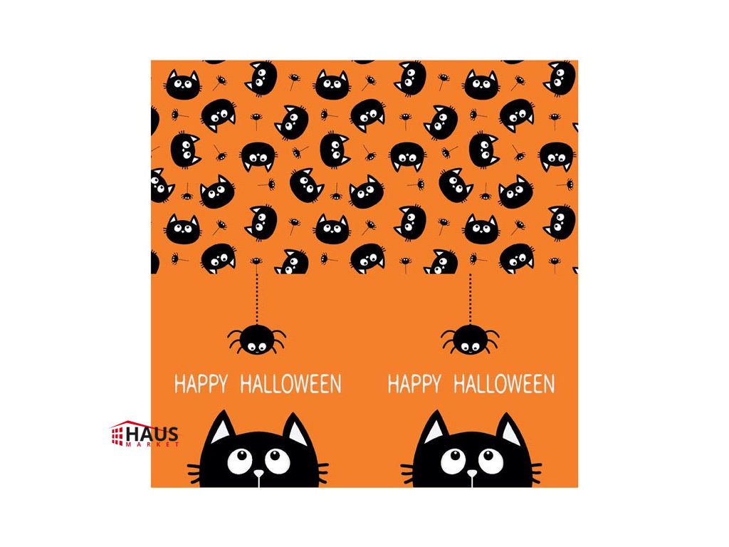 Trojvrstvový papierový obrúsok. Krásne vysokokvalitné obrúsky s motívom mačiek, pavúkov a nápisom „HAPPY HALLOWEEN" vyčarujú úžasnú atmosféru. Ideálne na halloweensku párty. MOTÍV: mačky, pavúky, nápis „HAPPY HALLOWEEN" POČET OBRÚSKOV V BALENÍ: 20 ks Uvedená cena je za 1 balenie po 20 ks.Dodatočné parametre