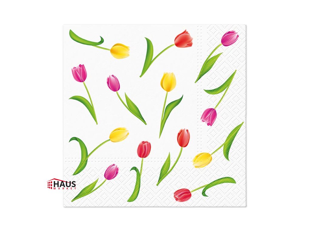 Papierový veľkonočný obrúsok. Krásne veľkonočné obrúsky s obrázkami tulipánov dodajú prestretému stolu nádych jari a vyčarujú príjemnú atmosféru pri slávnostnom obede alebo večeri. Obrúsok je vyrobený z kvalitného trojvrstvového papiera. Vhodné aj na obrúskovú techniku a rôzne dekorácie. Motív: tulipány POČET OBRÚSKOV V BALENÍ: 20 ks Uvedená cena je za 1 balenie po 20 ks.Dodatočné parametre