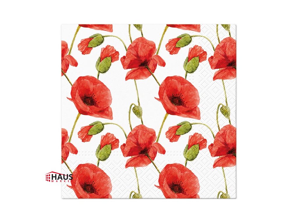 Papierový veľkonočný obrúsok. Krásne veľkonočné obrúsky s obrázkami vlčieho maku dodajú prestretému stolu nádych jari a vyčarujú príjemnú atmosféru pri slávnostnom obede alebo večeri. Obrúsok je vyrobený z kvalitného trojvrstvového papiera. Vhodné aj na obrúskovú techniku a rôzne dekorácie. Motív: vlčí mak Počet obrúskov v balení: 20 ks Uvedená cena je za 1 balenie po 20 kusoch.Dodatočné parametre