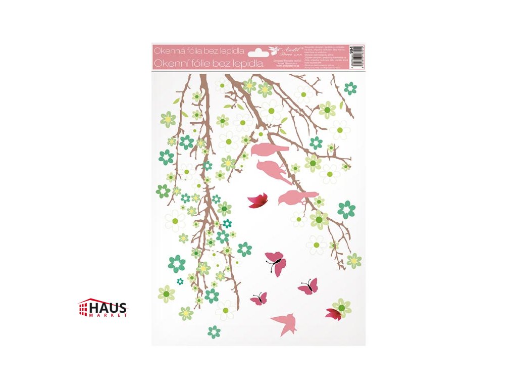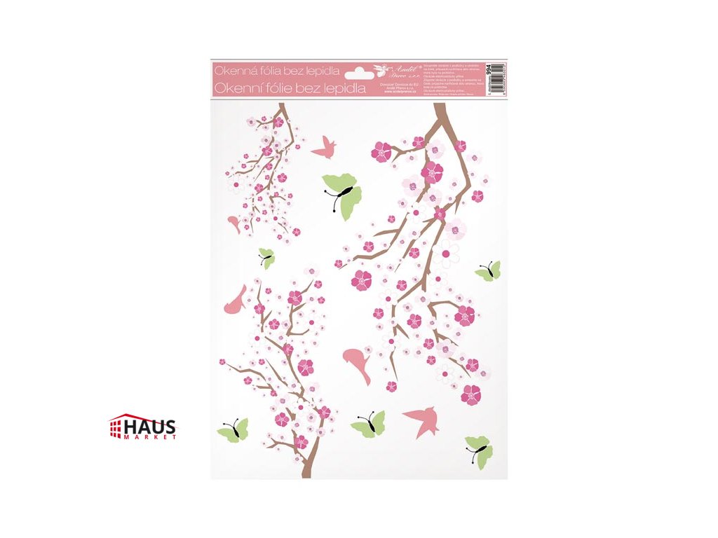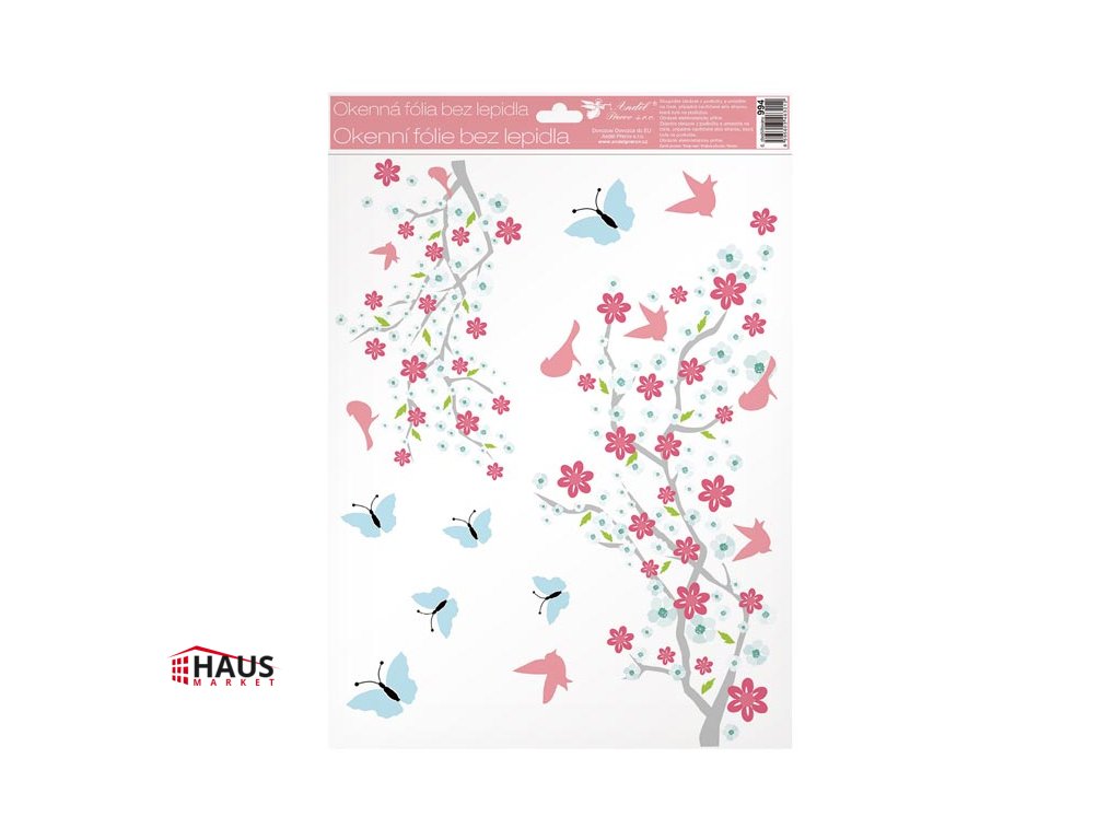 Dekoračná okenná fólia - konáre v kvetu s glitrami. Okenné fólie neobsahujú lepidlo. Na plochu priľnú elektrostaticky a nezanechávajú teda po sebe žiadnu stopu. Vhodné sú akékoľvek hladké plochy, napríklad sklo, výlohy, zrkadlá alebo kachličky. Čisté - bez lepidla - opakovane použiteľné. NÁVOD: 1. Odporúčame pred použitím plochu očistiť od prachu a iných nečistôt. 2. Fólia sa ľahko aplikuje sňatím z podkladového papiera a umiestnením na hladkú plochu. 3. Fóliu priložte a vyhlaďte prípadné bublinky rukou alebo suchou handričkou. 4. Po použití je možné ich uložiť na pôvodný podkladový papier a uskladniť na ďalšiu sezónu. Dodávame v mixe po 4 ks podľa skladovej zásoby. Uvedená cena je za 1 ks.Dodatočné parametre