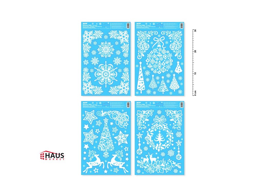 Adhézna okenná fólia bez lepidla s vianočnými motívmi (vločky, stromčeky, hviezdy). Vyzdobte si okno týmito krásnymi samolepkami na okno. Vytvoria vám čarovnú atmosféru domova. NÁVOD: 1. Odlepte z podložky obrázok a umiestnite ho na čisté, prípadne navlhčené sklo tou stranou, ktorá bola na podložke. 2. Obrázok elektrostaticky priľne. 3. Fólia sa dá ľahko odlepiť a premiestniť. Dodávame v mixe po 4 ks podľa skladových zásob. Uvedená cena je za 1 ks.Dodatočné parametre