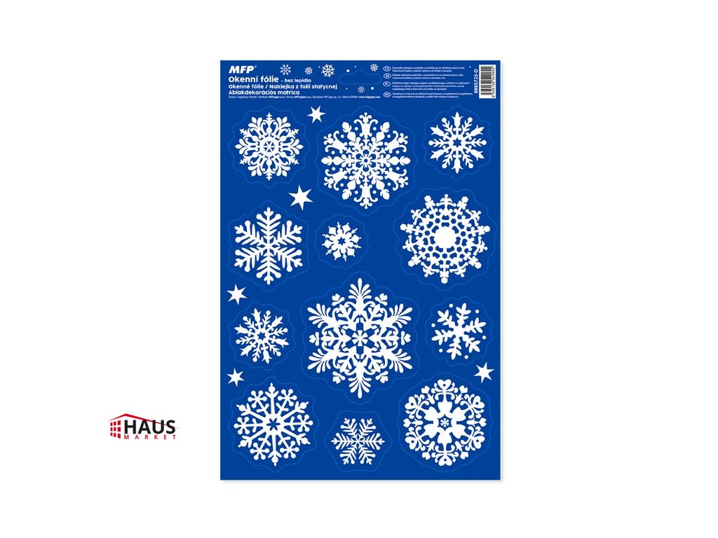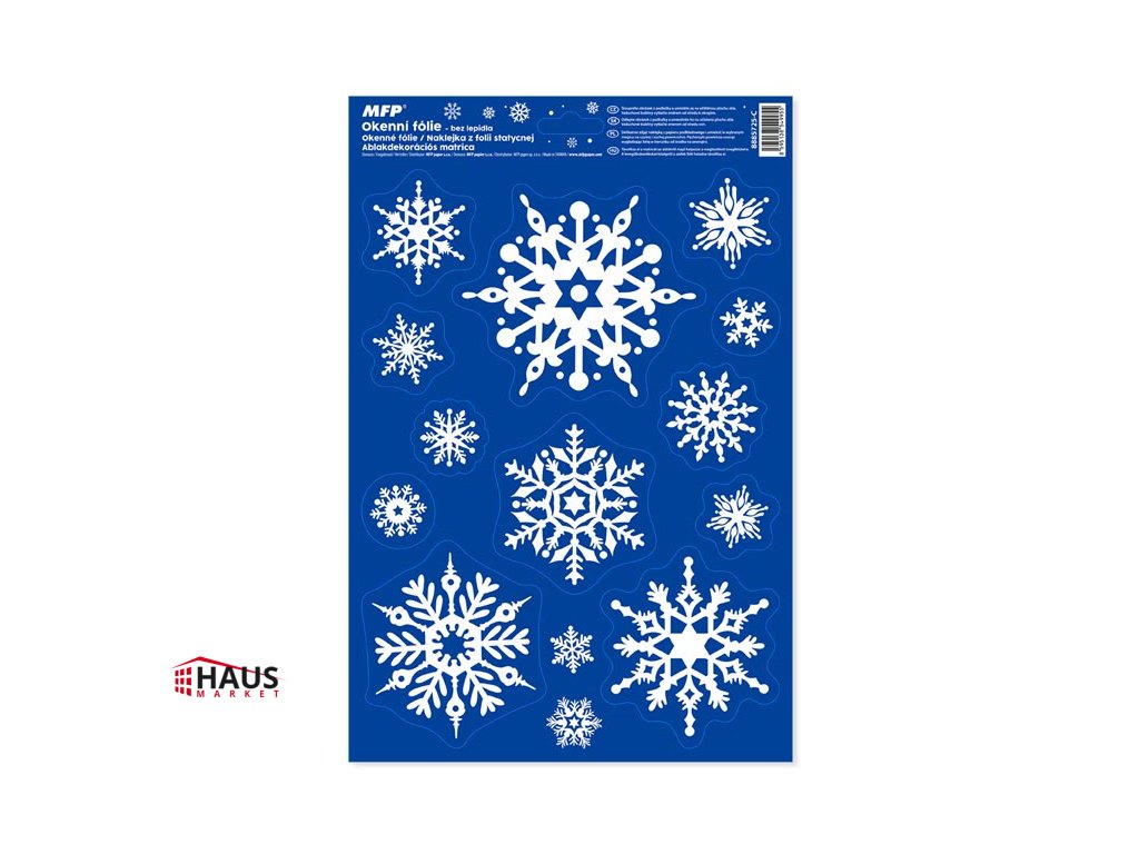 Adhézna okenná fólia bez lepidla s vianočnými motívmi vločiek (biele). Vyzdobte si okno týmito krásnymi samolepkami na okno. Vytvoria vám čarovnú atmosféru domova. NÁVOD: 1. Odlepte z podložky obrázok a umiestnite ho na čisté, prípadne navlhčené sklo tou stranou, ktorá bola na podložke. 2. Obrázok elektrostaticky priľne. 3. Fólia sa dá ľahko odlepiť a premiestniť. Dodávame v mixe po 4 ks podľa skladových zásob. Uvedená cena je za 1 ks.Dodatočné parametre