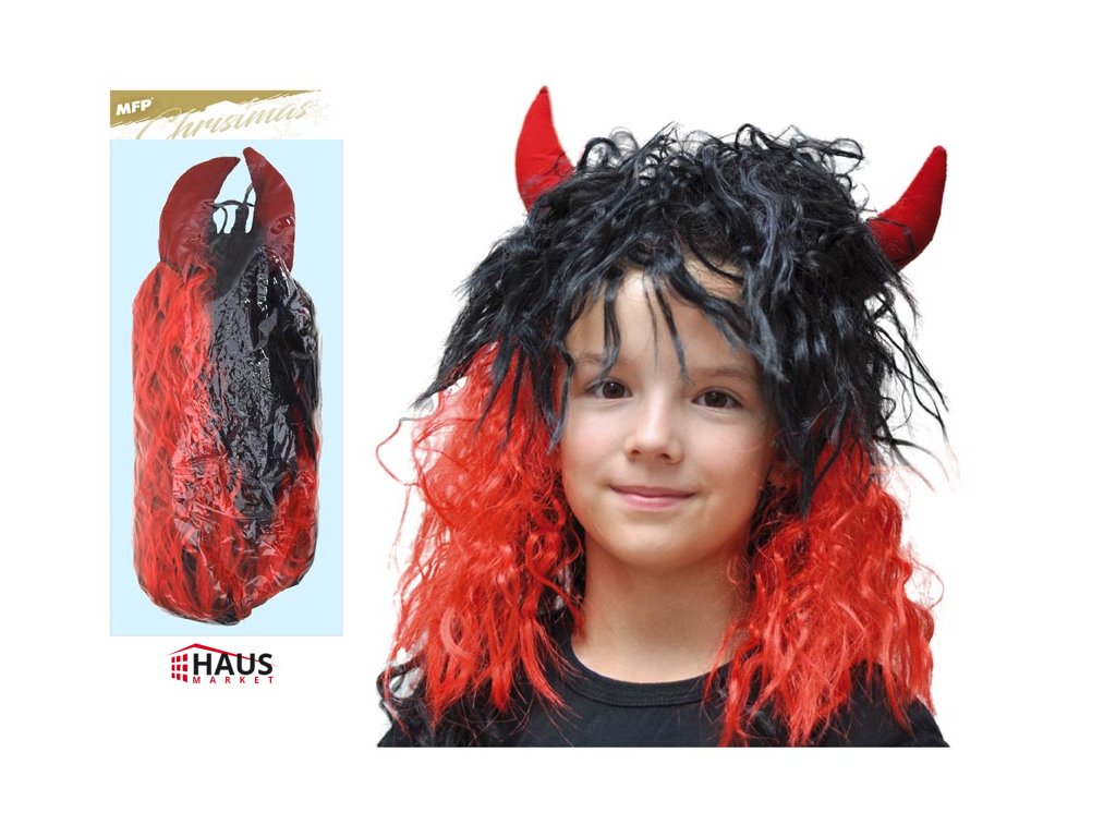 Čertovská parochňa s rohmi a dlhými červenými vlasmi. Na vnútornej strane parochne je priedušná sieťka, vďaka tomu sa vám nebude potiť v maske hlava. Okraj parochne je opatrený gumičkou, aby maska dobre sedela a nepadala. Výrobok je zdravotne neškodný. Uvedená cena je za 1 ks. Dodávame vo vrecku so závesom.Dodatočné parametre