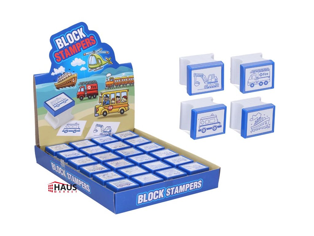 Pečiatka dopravné prostriedky. Skvelá zábava s pečiatkami, vďaka ktorej vaše deti precvičujú nielen svoju fantáziu a kreaitivitu, ale aj jemnú motoriku. Pečiatku pritlačte na čistý papier, výsledný obrázok si môžete ďalej vyfarbiť. Pečiatky je možné týmto spôsobom kombinovať, deti si môžu vytvárať svoje vlastné príbehy. Určené pre deti od 3 do 6 rokov. Varovanie: Slúži ako výtvarná pomôcka na potlač papiera. Používať pod dozorom dospelej osoby. Obal odstráňte z dosahu detí. Všetkých 24 ks je uložených v krabičke. Dodávame podľa skladovej zásoby. Uvedená cena je za 1 ks.Dodatočné parametre