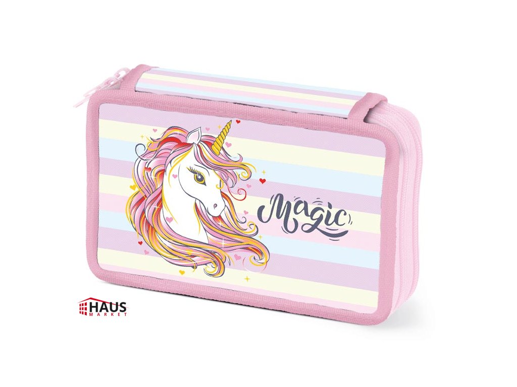 Školské dvojposchodové púzdro s dvoma chlopňami s obrázkom jednorožca. Peračník je nevyhnutná súčasť výbavy každého školáka! Peračník je bez výbavy. Veľmi ľahko sa uzatvára vďaka veľkému zipsu. Toto školské púzdro nie je vybavené. Peračník je zdravotne nezávadný a neobsahuje toxické látky. Uvedená cena je za 1 ks.Dodatočné parametre