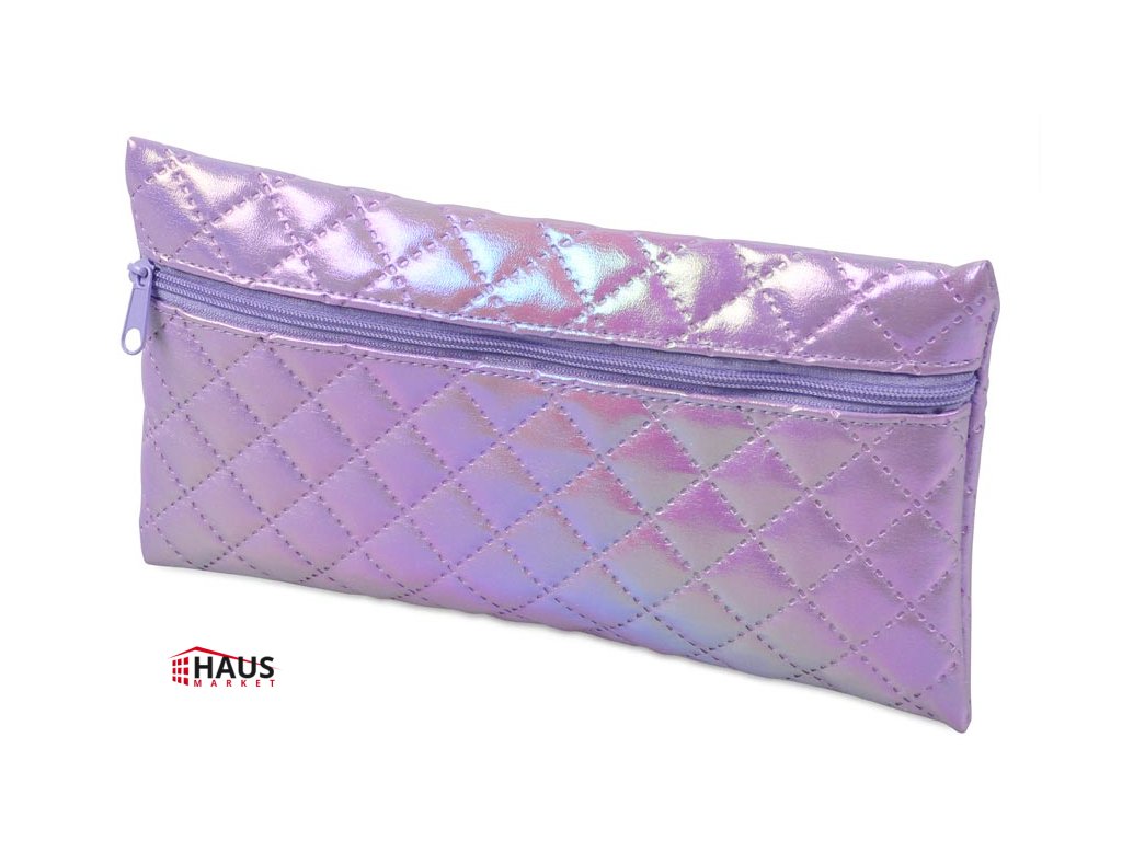 Školský peračník/etue v perleťovo fialovej farbe, ktorá vytvára dúhové odlesky. Povrch je prešívaný vo vzore kosoštvorcov, čo dodáva peračníku štruktúru a elegantný vzhľad. Zips, ktorý sa tiahne po celej šírke peračníka, je zladený s farbou peračníka a je vo svetlo fialovom odtieni. Peračník je plochý, obdĺžnikového tvaru, vhodný na uloženie písacích potrieb, drobností alebo kozmetických predmetov. - nie je vybavený - zdravotne nezávadný a neobsahuje toxické látky ODPORÚČANIE: - čistiť iba navlhčenou handričkou vo vode s trochou saponátu Uvedená cena je za 1 ks.Dodatočné parametre