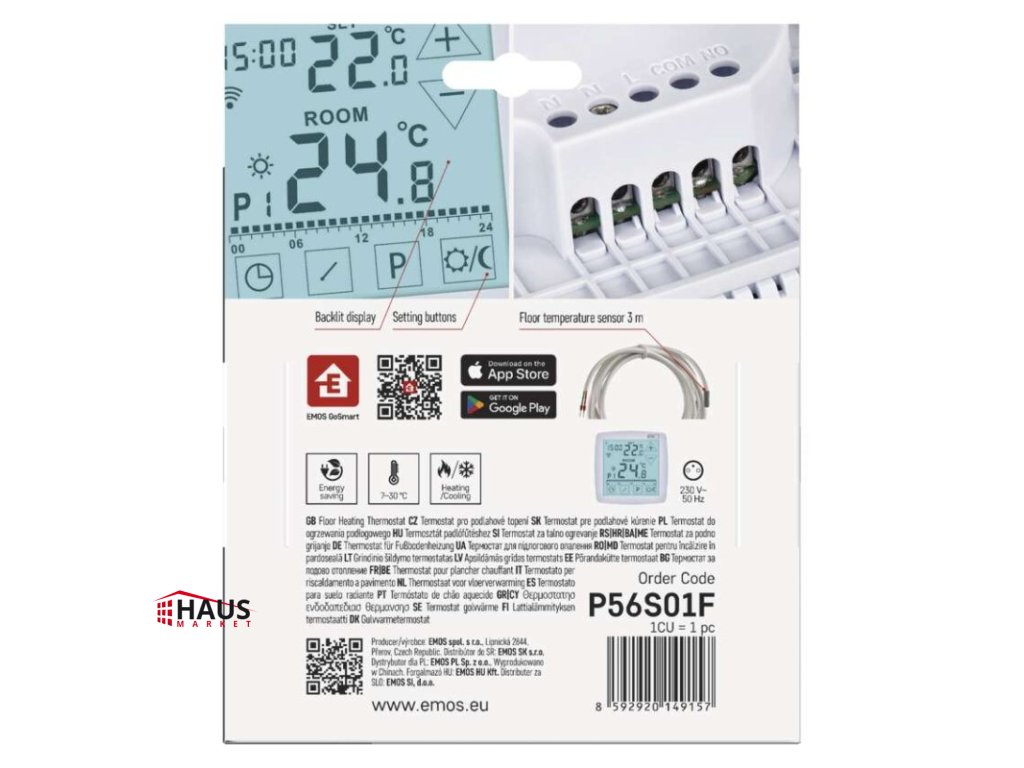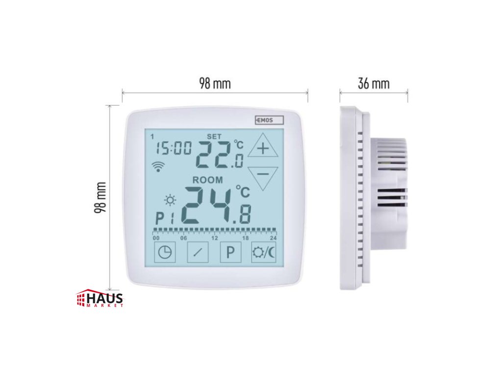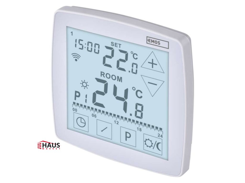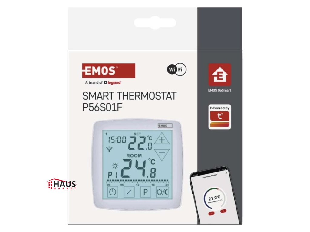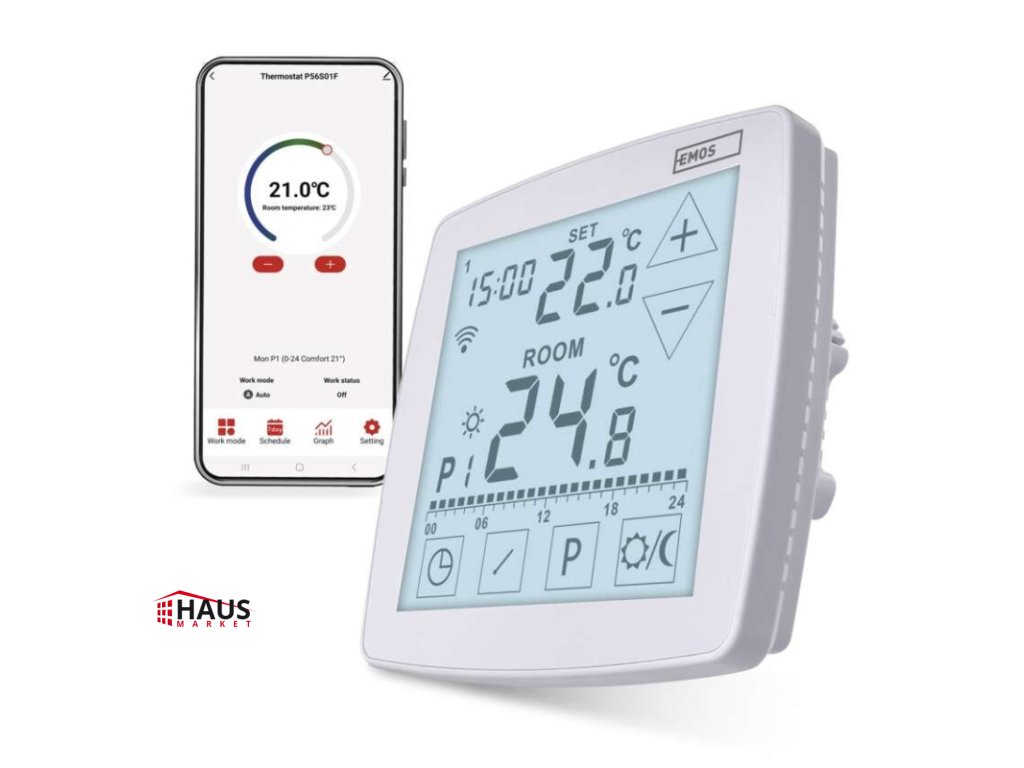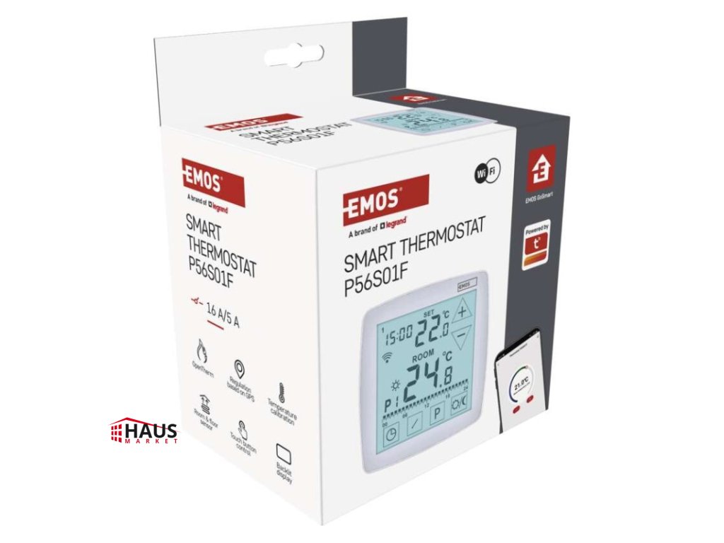 dĺžka kapilárneho čidla: –|dosah vo voľnom priestore: –|druh regulácie: vykurovací a chladiaci systém|farba: biela|funkcia ON/OFF: áno|funkcia prázdniny: áno|funkcia Set-back: nie|jazyky aplikácie: EN, CZ, SK, PL, DE, HU, SI, FR, + 60 ďalších jazykov|kalibrácia teploty: áno|kompatibilita: EMOS GoSmart, TUYA, LIDL, Smartlife, otvorený systém|meranie teploty: 0 °C až 40 °C, rozlíšenie 0,1 °C|možnosť prepojenia s ďalšími detektormi: nie|napájanie: 230 V AC|napájanie brány: –|napájanie prijímača: –|napájanie vysielača: –|nastavenie teploty: 7 ° C až 30 ° C, po 0,2 ° C|nastaviteľný rozptyl teploty: #|notifikácie do mobilnej aplikácie: áno|ochrana proti zamrznutiu: áno|ovládanie hlasovými asistentmi: áno (Amazon Alexa, Google Assistant)|počet programov: 6 + 3 užívateľsky nastaviteľné|podlahový senzor: NTC 10 kΩ, 3 m|podporované OS: Android, iOS|podsvietený displej: áno|pracovná frekvencia: –|predajný obal: 1 ks, krabička|prenosová frekvencia: 2,4 GHz WIFI (IEEE802.11b/g/n)|protokol: Wi-Fi|rozmer: 98 × 35 × 98 mm|rozmer brány: –|rozmer prijímača: –|rozmer vysielača: –|spínaná záťaž: 16 A odporovo, 5 A induktívne|spínanie: 230 V AC alebo beznapäťové|súčasť balenia: termostat, podlahové čidlo 3 m, Ø 8 mm|typ nastavenia teploty: komfortná a úsporná teplota|typ ovládania: programovateľný elektronický izbový termostat, možnosť ovládania cez mobil (iOS, Android)|typ termostatu: drôtový s OpenTherm komunikáciou + podlahové kúrenie, podomietkovýDodatočné parametre