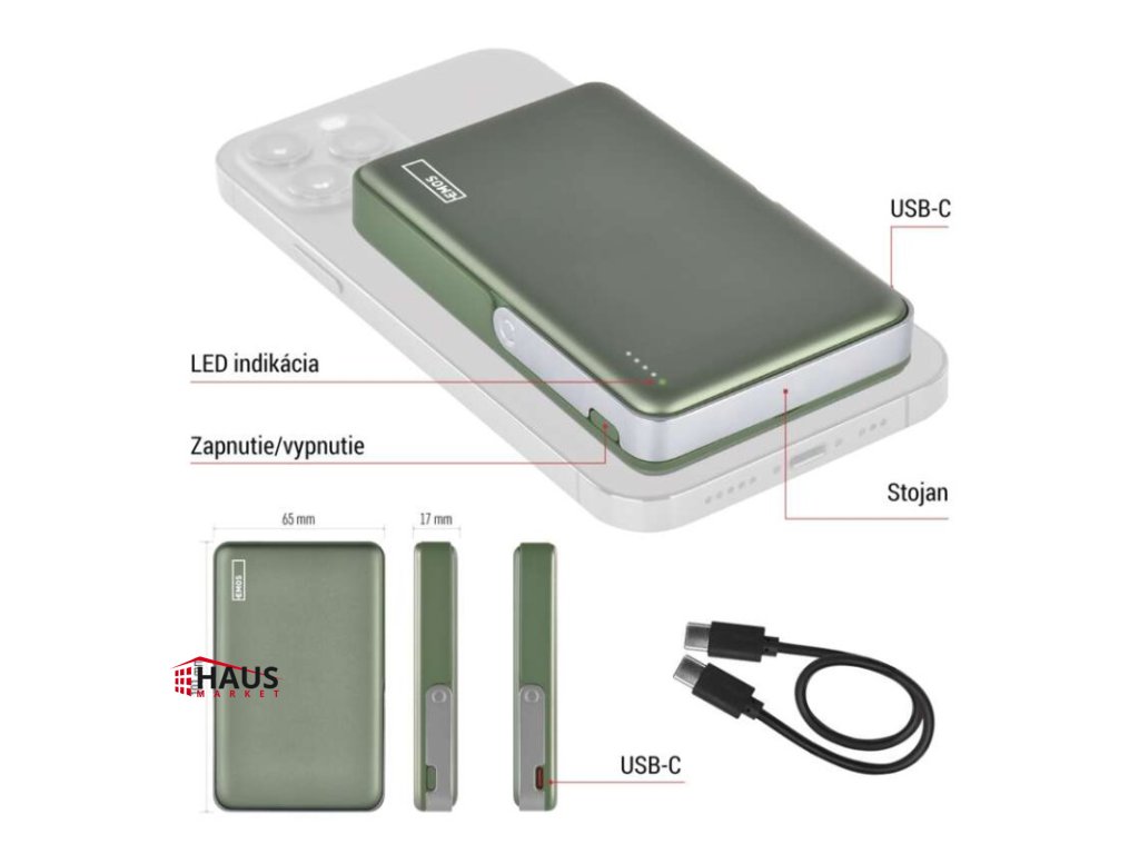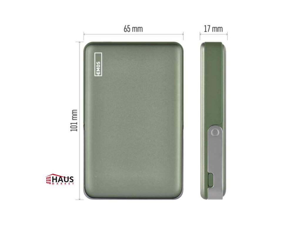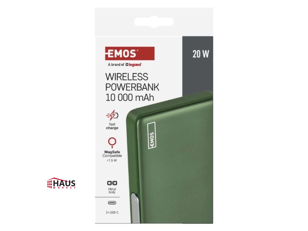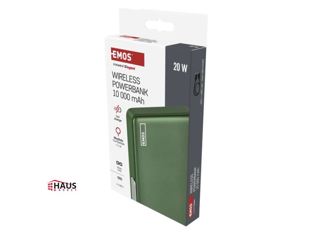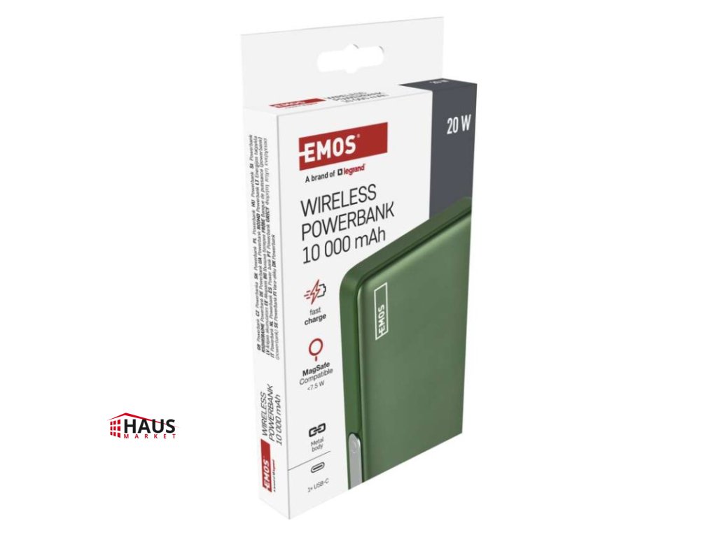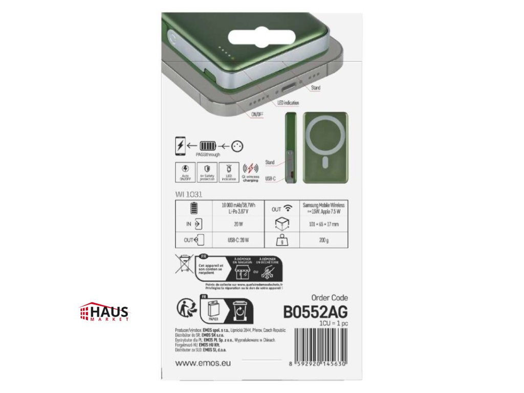 Power bank EMOS WI 1031, 10 000 mAh, 20 W+Wireless, army-green