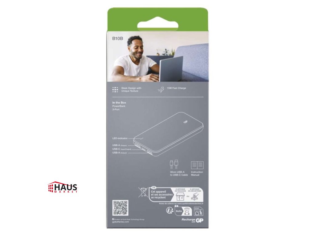 Power bank GP B+ Series, 10 000 mAh, 15 W, béžová