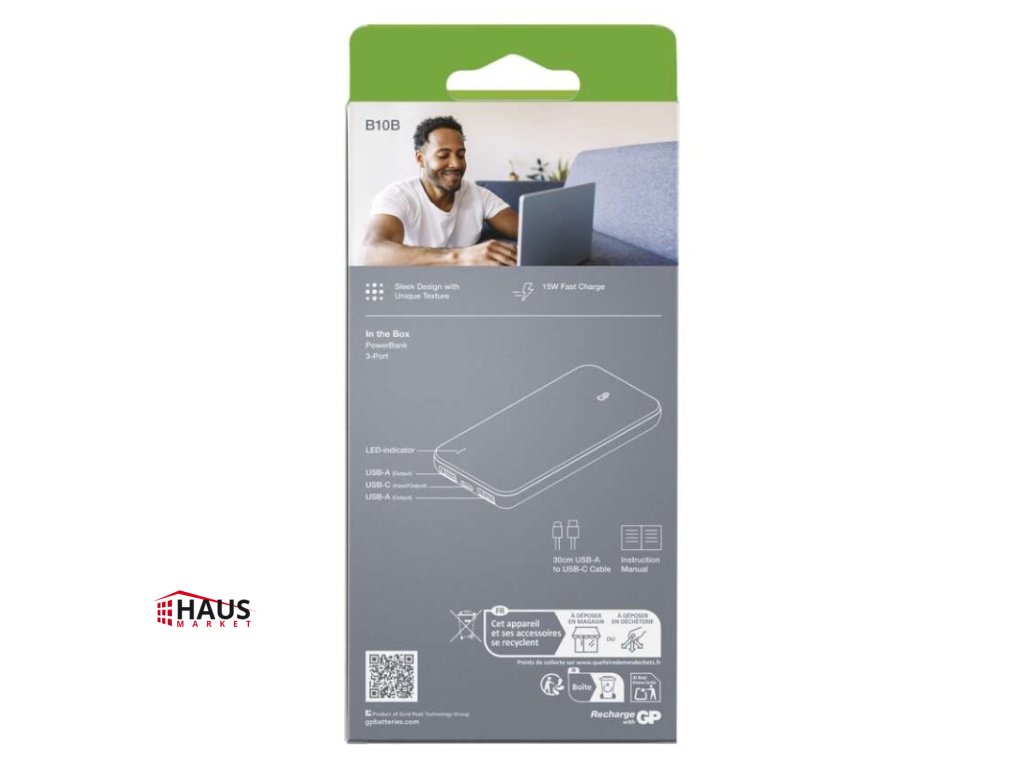 Power bank GP B+ Series, 10 000 mAh, 15 W, modrá