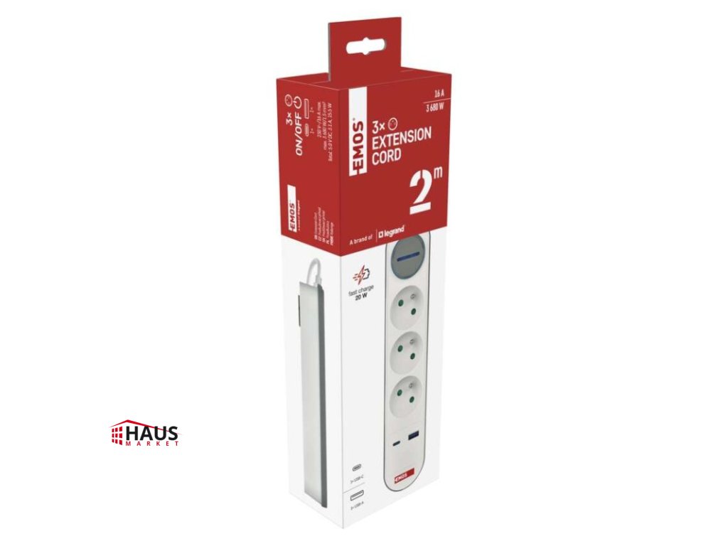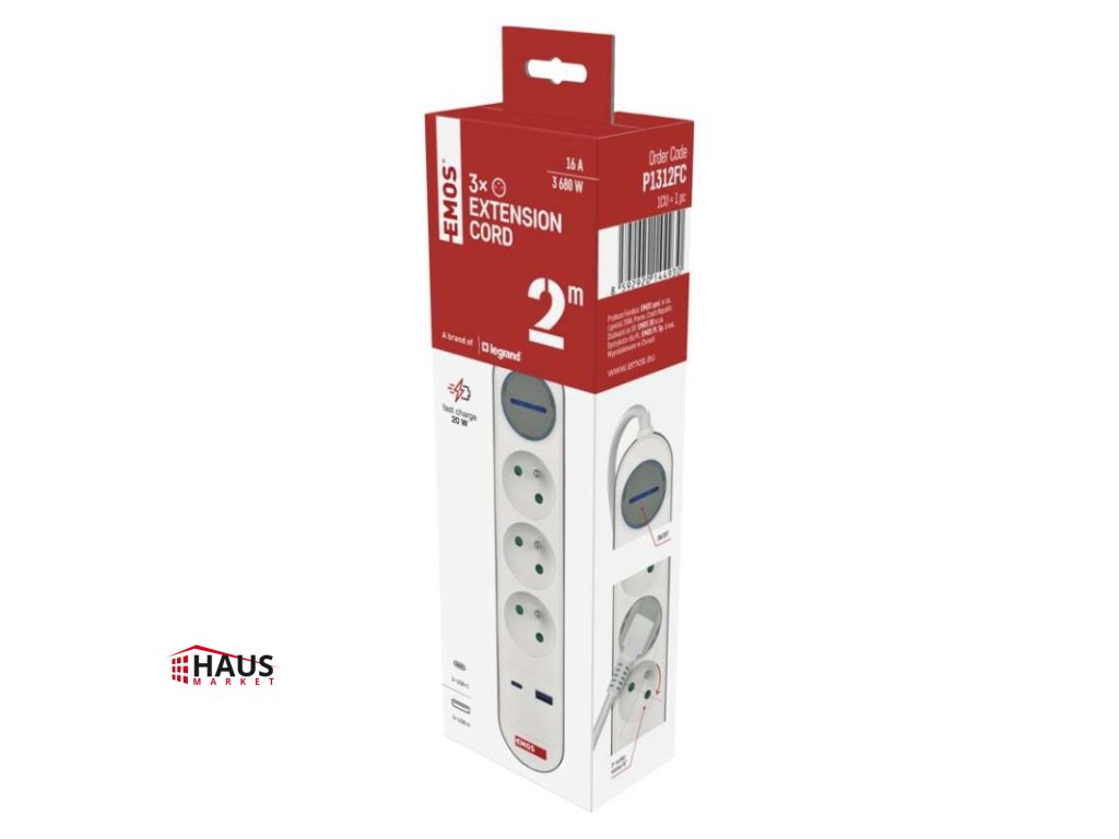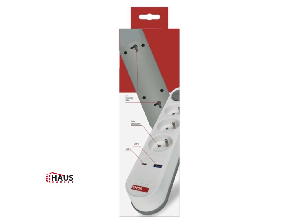 ďalšie funkcie: nie|detské clonky: áno|dĺžka: 2 m|farba: biela, šedá|jazyky aplikácie: –|kompatibilita: –|krytie: IP20|materiál zásuvky a vidlice: PC (polykarbonát)|max. záťaž: 3 680 W|napätie: 250 V~|notifikácie do mobilnej aplikácie: nie|ovládanie hlasovými asistentmi: nie|počet zásuviek: 3× 2P + PE|podporované OS: –|predajný obal: 1 ks, krabica|prenosová frekvencia: –|prierez vodiča: 1,5 mm²|protokol: –|prúd: 16 A max.|typ izolácie: PVC|USB výstup: 1× USB-A, 1× USB-C, total: 3,1 A – 15,5 W (fast charging)|vodič: H05VV-F3G|vypínač: ánoDodatočné parametre