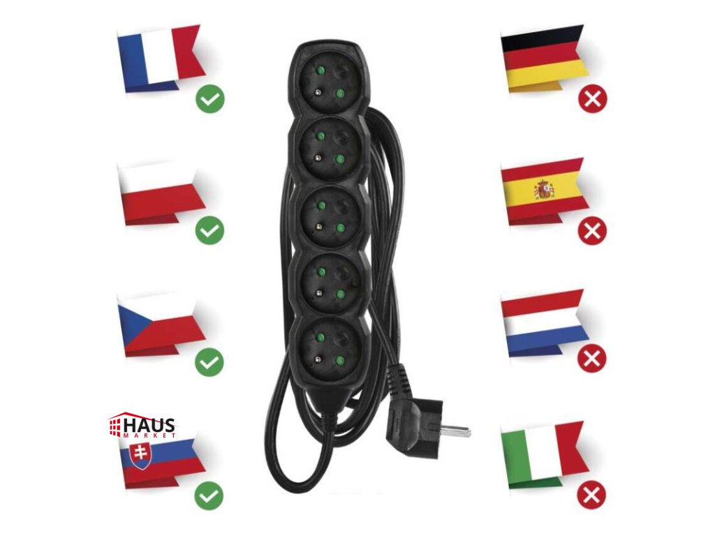 detské clonky: áno|dĺžka: 2 m|farba: čierna|krytie: IP20|materiál zásuvky a vidlice: plast|max. záťaž: 3 680 W|napätie: 250 V~|počet zásuviek: 5|predajný obal: 1 ks, záves|prierez vodiča: 1,0 mm²|prúd: 16 A max.|typ izolácie: PVC|USB výstup: nie|vodič: H05VV-F3G|vypínač: nieDodatočné parametre