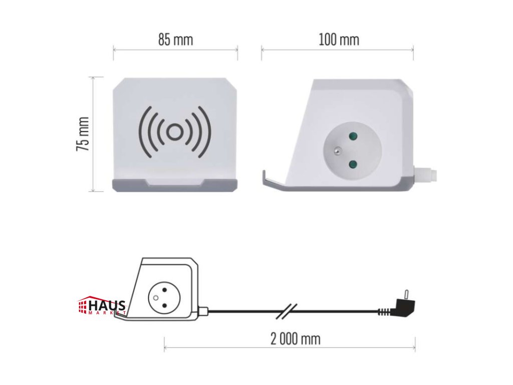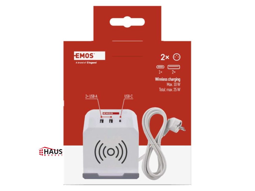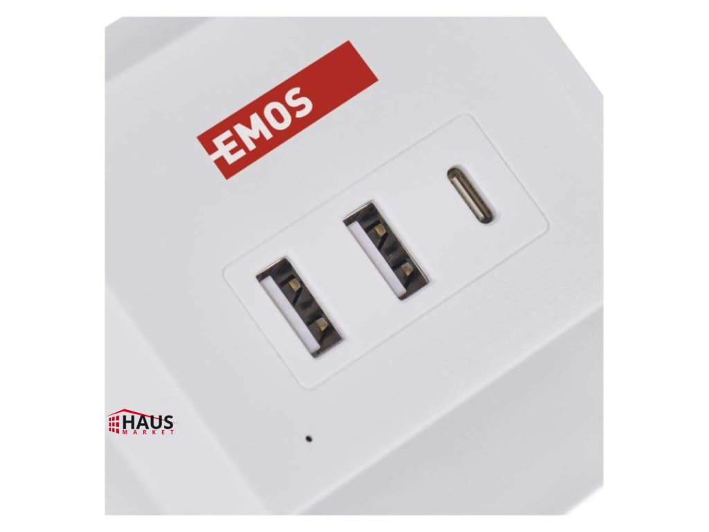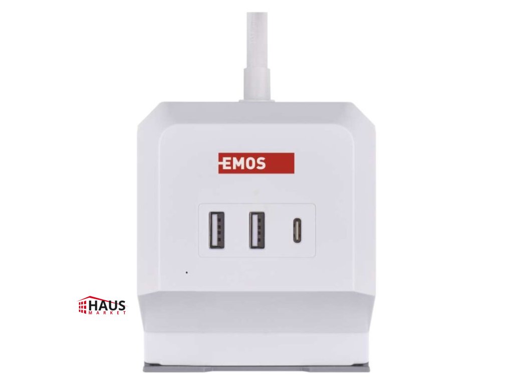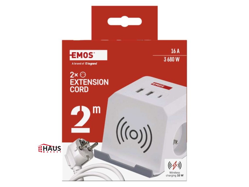 Predlžovací kábel - kocka 2 m / 2 zásuvky / biely / 2×USB-A + 1×USB-C+Qi / 1,5 mm2