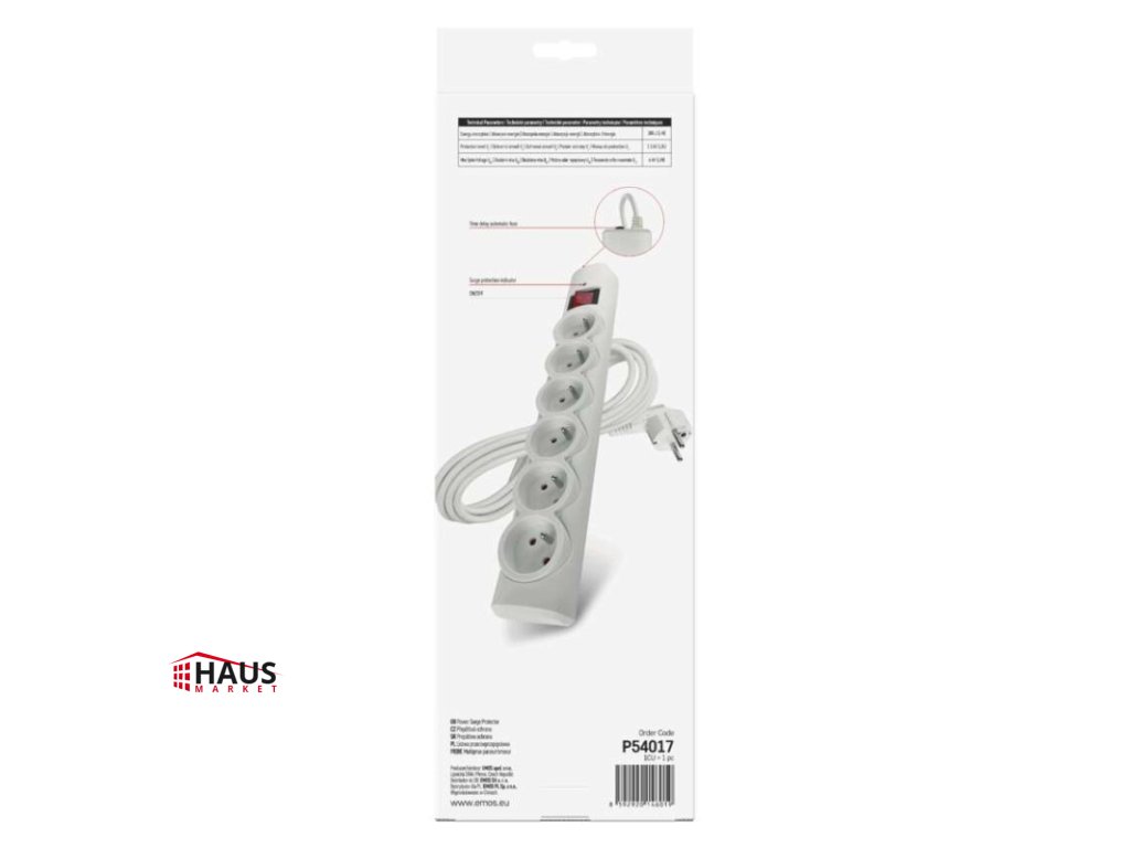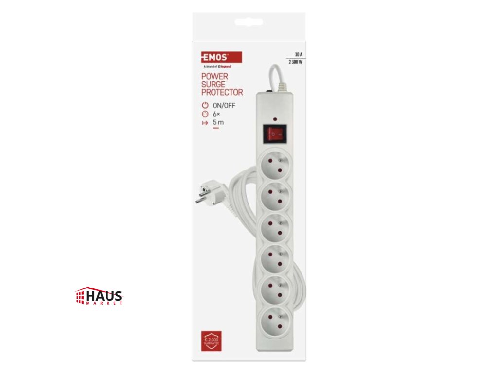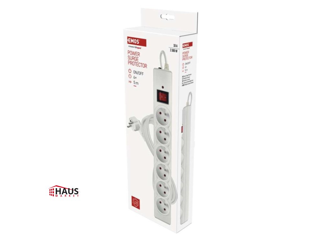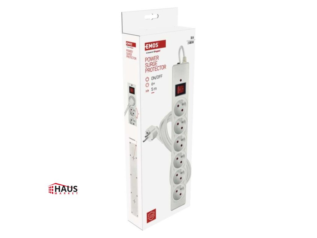 Prepäťová ochrana – 6 zásuviek, 5 m, biela