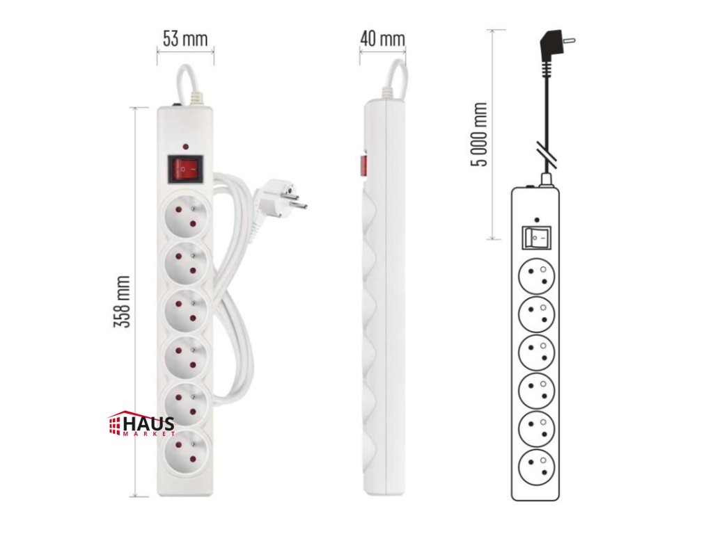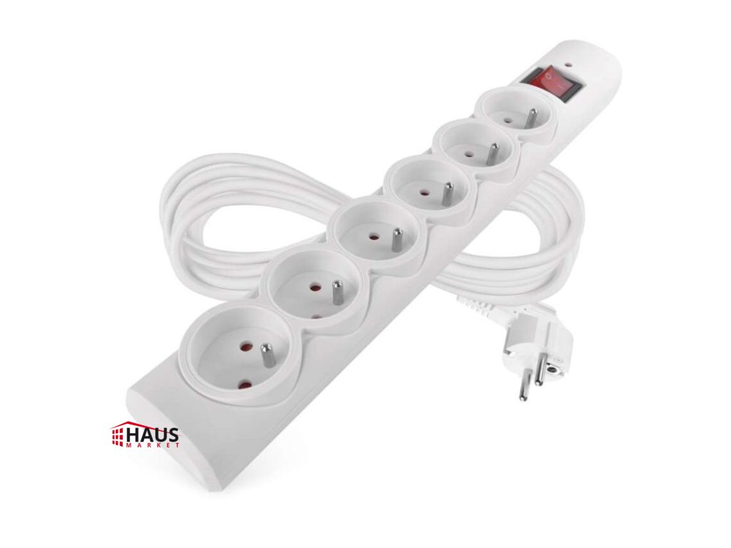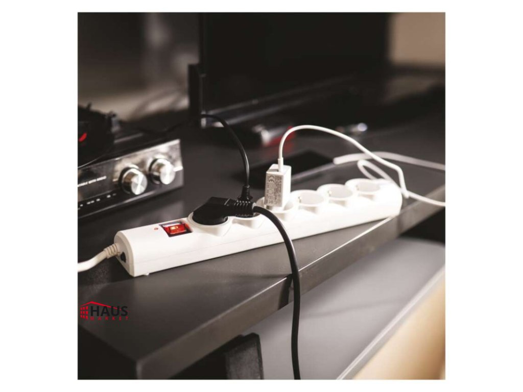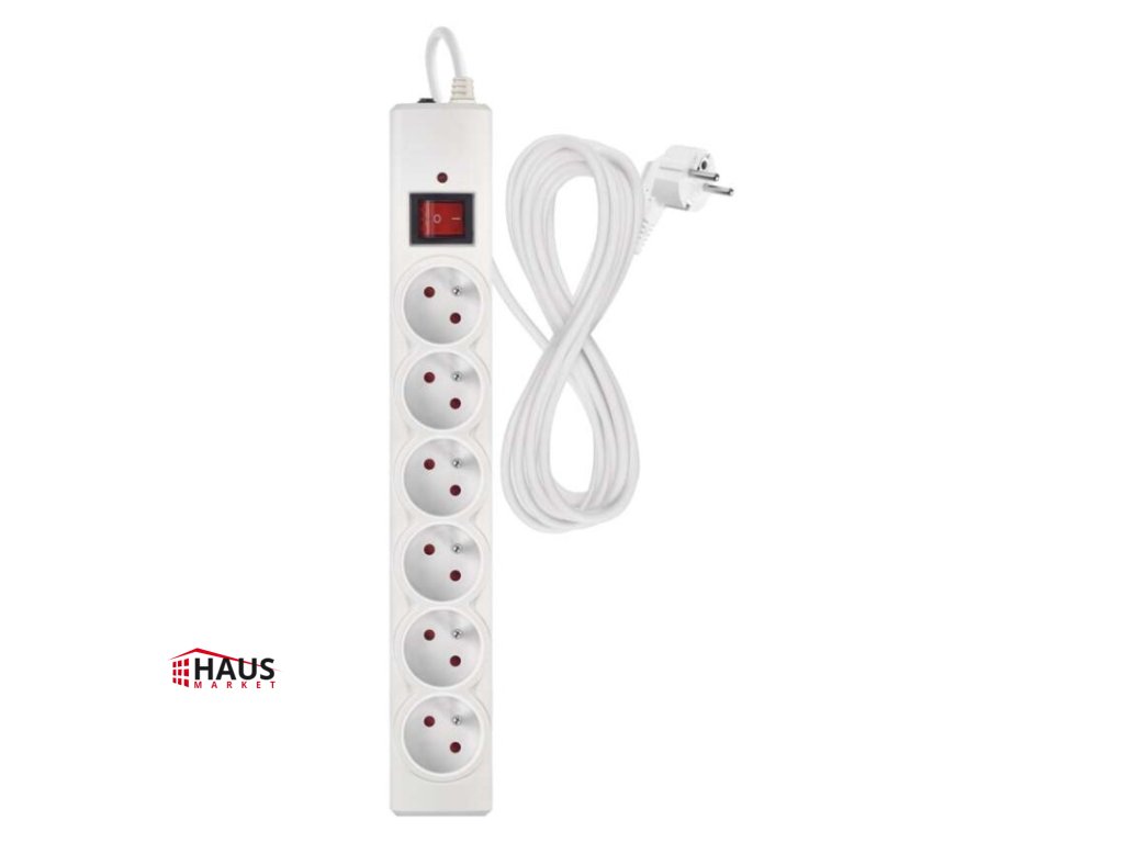 Prepäťová ochrana – 6 zásuviek, 5 m, biela