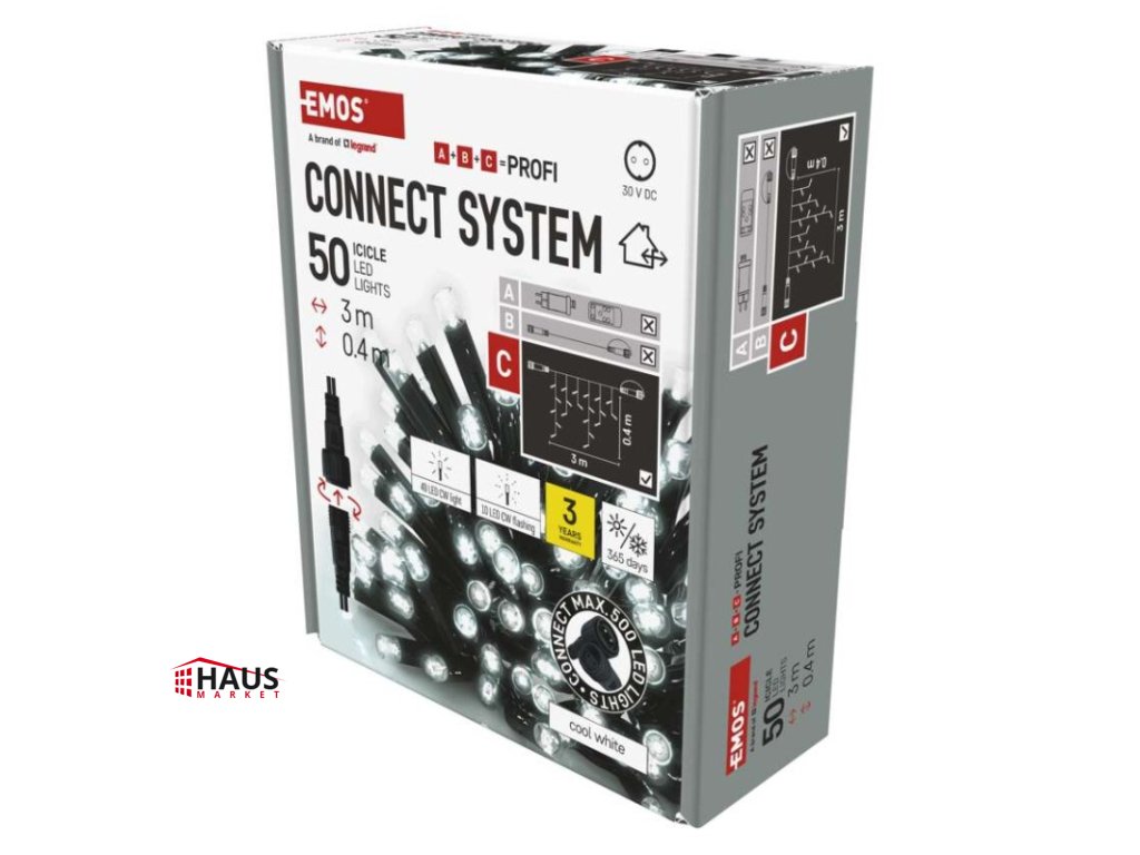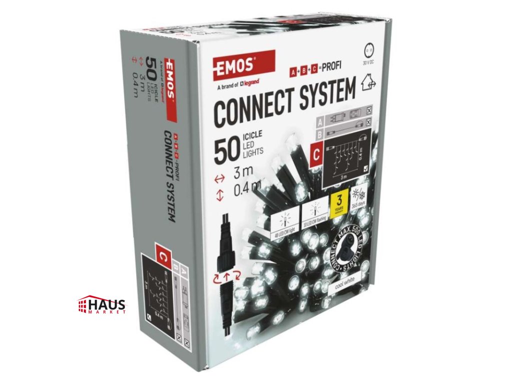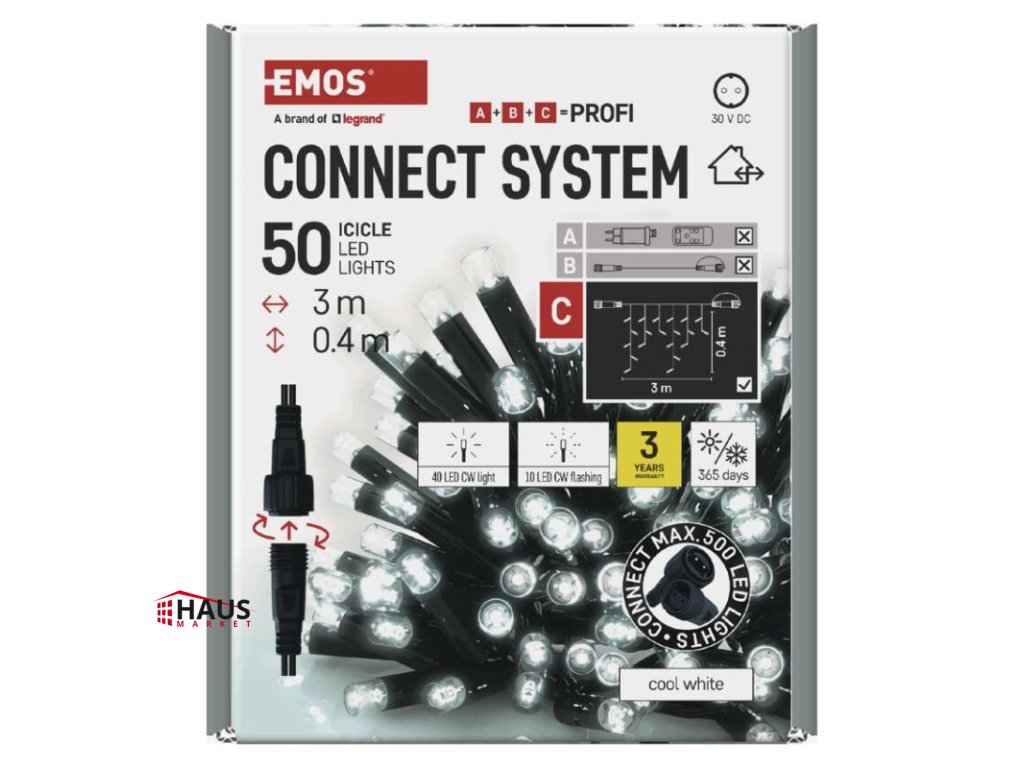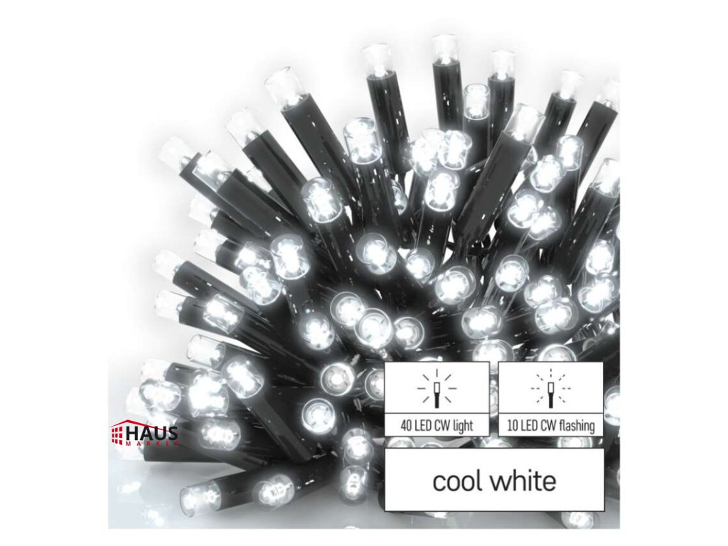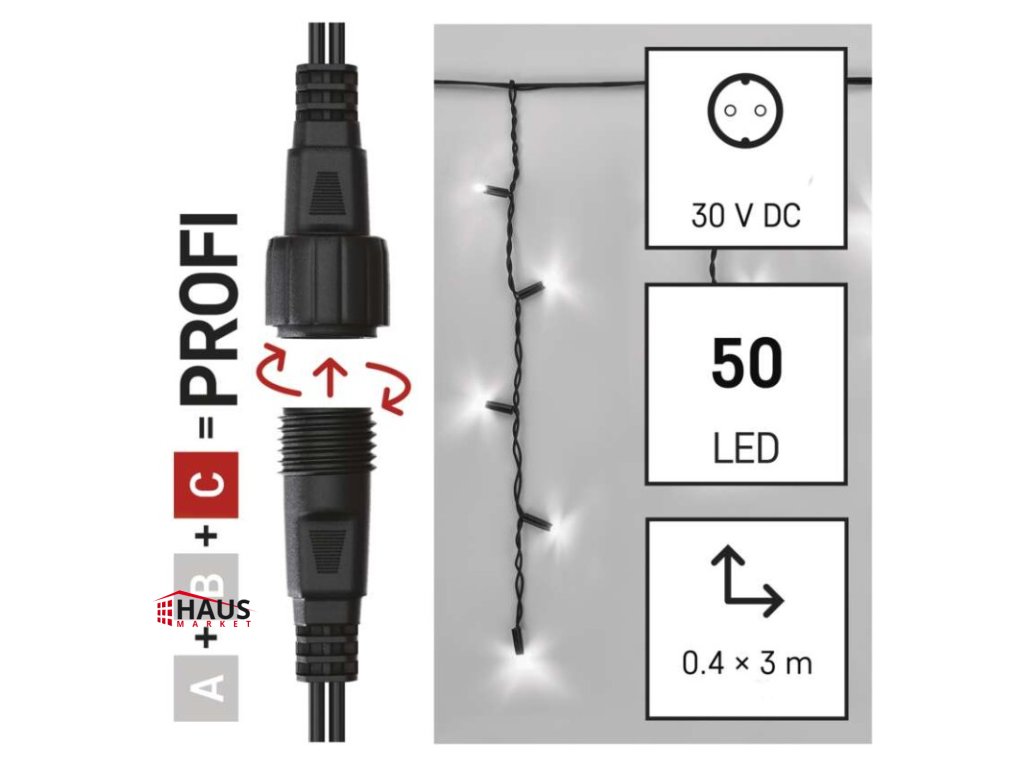 časovač: neuvádza sa|diaľkový ovládač: nie|dĺžka prívodu: 10 cm|farba drôtu: čierna|farba svetla: studená biela|funkcia: svieti/bliká|krytie: IP44|LED medzera: 10 cm|materiál: guma|možnosť prepojenia: áno|počet LED: 50|použitie: vonkajšie aj vnútorné|predajný obal: 1 ks, krabica|pre výšku stromu: neuvádza sa|príkon: max. 4 W|produkt: kvaple|rozmer: 3 × 0,4 m|tvar: klasický|typ napájania: sieťový adaptér (nie je súčasťou balenia)|veľkosť LED: 7 mm|vstupné napätie: 30 V DC|výstupné napätie: neuvádza sa|záručná doba: 3 roky|životnosť: 10 000 hodínDodatočné parametre