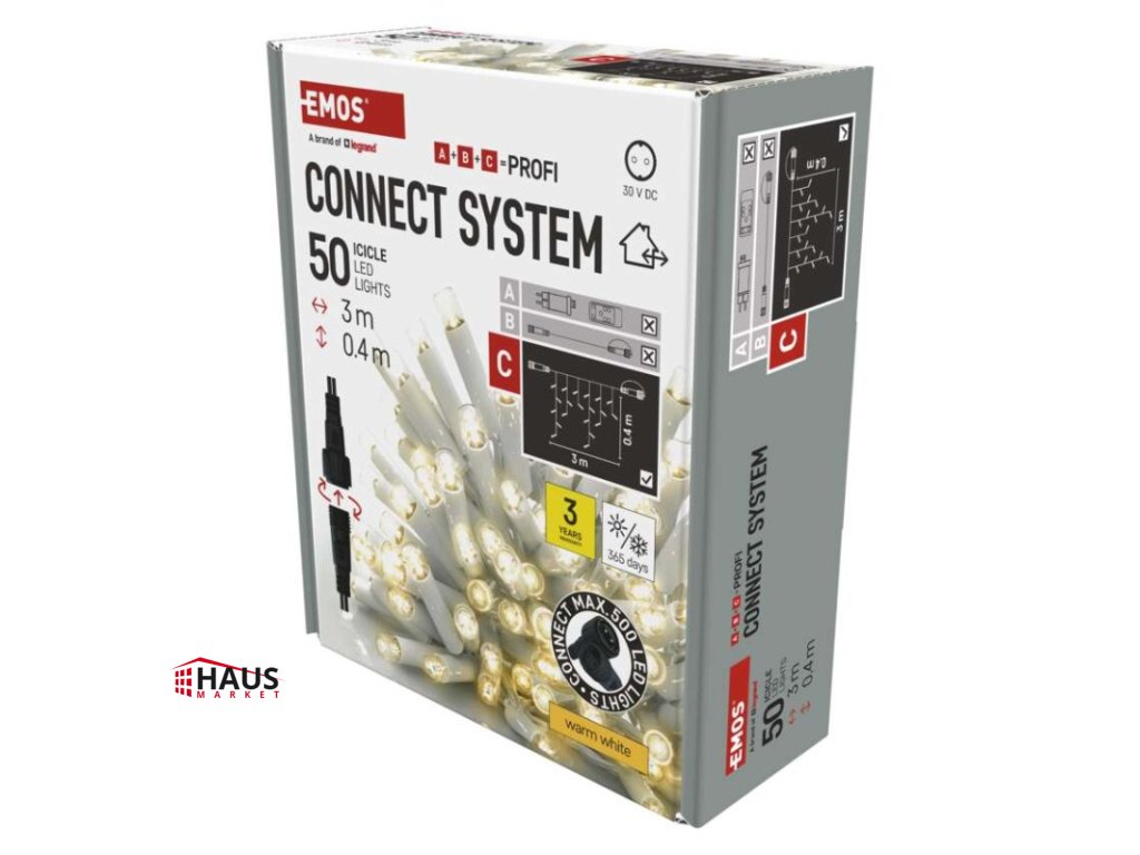 Profi LED spojovacia reťaz biela – cencúle, 3 m, vonkajšia, teplá biela