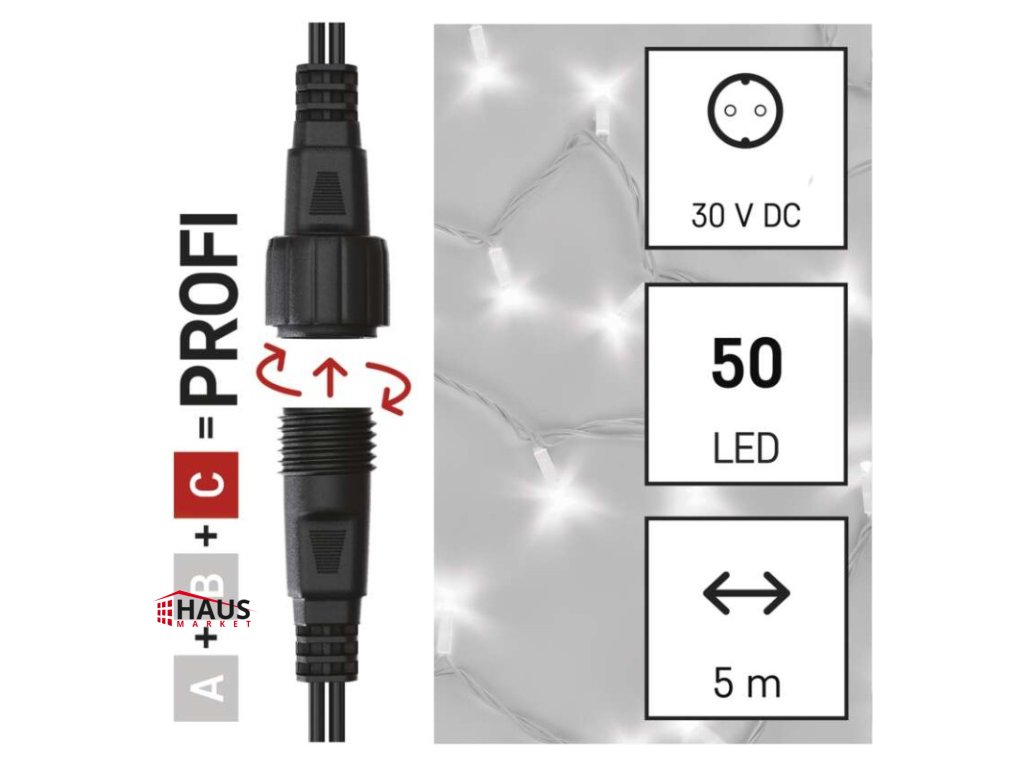 Profi LED spojovacia reťaz biela, 5 m, vonkajšia aj vnútorná, studená biela