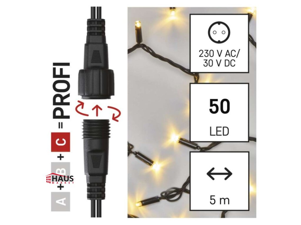 časovač: neuvádza sa|ďalšie funkcie: #|diaľkový ovládač: nie|dĺžka prívodu: 10 cm|farba drôtu: čierna|farba svetla: teplá biela|funkcia: svieti|jazyky aplikácie: #|kompatibilita: #|krytie: IP44|LED medzera: 10 cm|materiál: guma|možnosť prepojenia: áno|notifikácie do mobilnej aplikácie: #|ovládanie hlasovými asistentmi: #|počet LED: 50|podporované operačné systémy: #|použitie: vonkajšie aj vnútorné|predajný obal: 1 ks, krabica|prenosová frekvencia: #|pre výšku stromu: neuvádza sa|príkon: max. 4 W|produkt: reťaz|protokol: #|rozmer: 5 m|tvar: klasický|typ napájania: sieťový adaptér (nie je súčasťou balenia)|veľkosť LED: 7 mm|vstupné napätie: 30 V DC|výstupné napätie: neuvádza sa|záručná doba: 3 roky|životnosť: 10 000 hodínDodatočné parametre