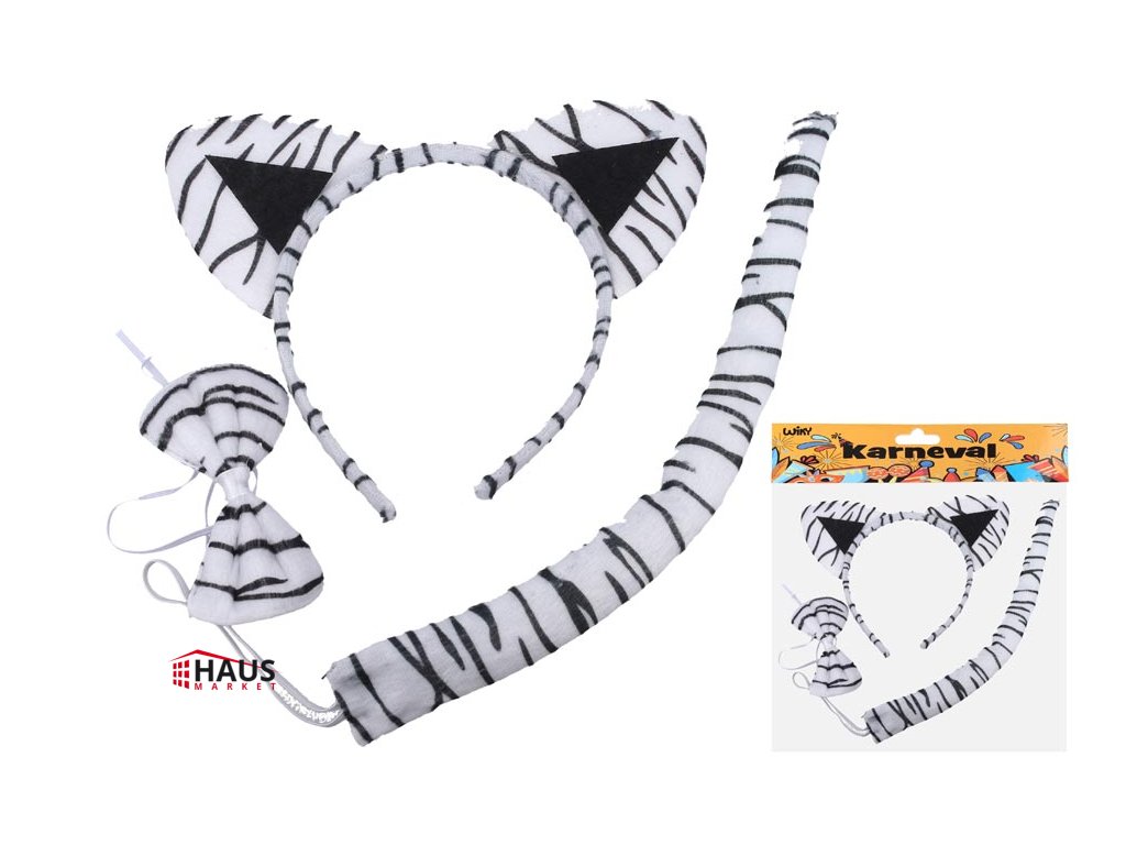 Karnevalový set - čelenka biely tiger BALENIE OBSAHUJE: - čelenku, chvost, motýlik Uvedená cena je za 1 balenie.Dodatočné parametre