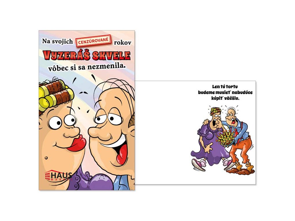 Srdečné blahoželanie k narodeninám. Potešte oslávenca a spolu s darčekom mu venujte originálne a krásne prianie, ktoré mu bude pripomínať túto radostnú udalosť. Text na prednej strane: Na svojich (cenzúrované) rokov vypadáš skvele, vôbec si sa nezmenila. Text vo vnútri blahoželania: Len tú tortu budeme musieť nabudúce kúpiť väčšiu. Rozmery: 114 x 190 mm Papier: pohľadnicový kartón 240 g Želanie ja balené vo vrecúšku, súčasťou balenia je listová obálka. Uvedená cena je za 1 ks.Dodatočné parametre