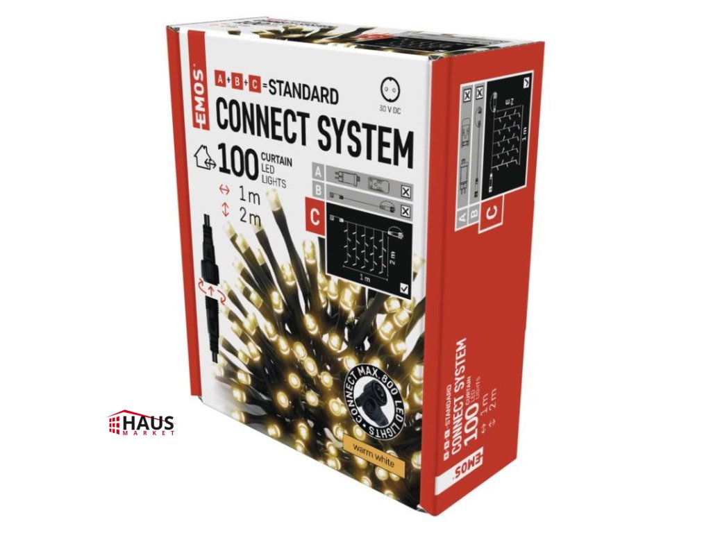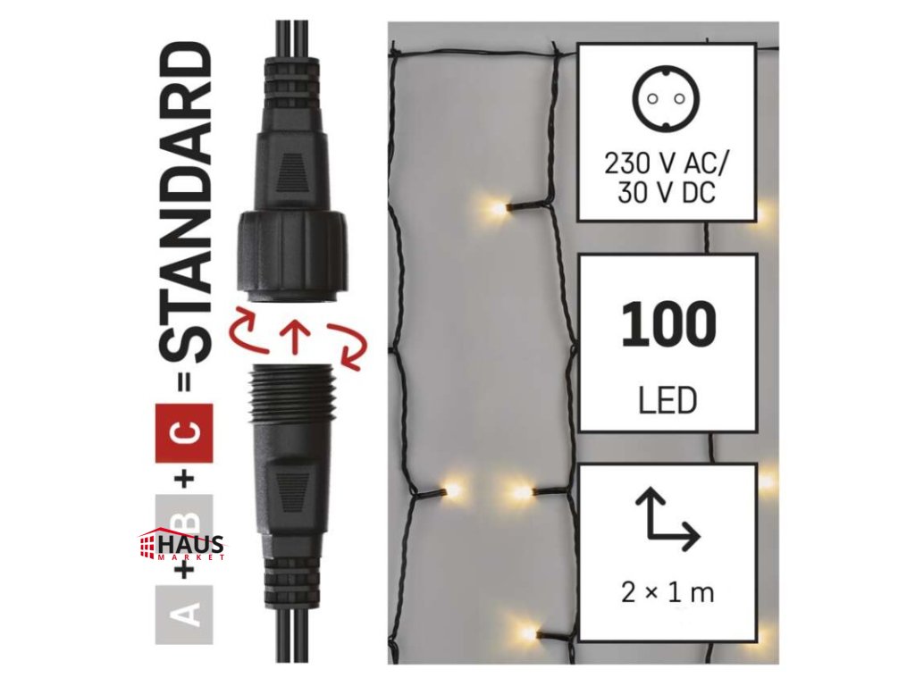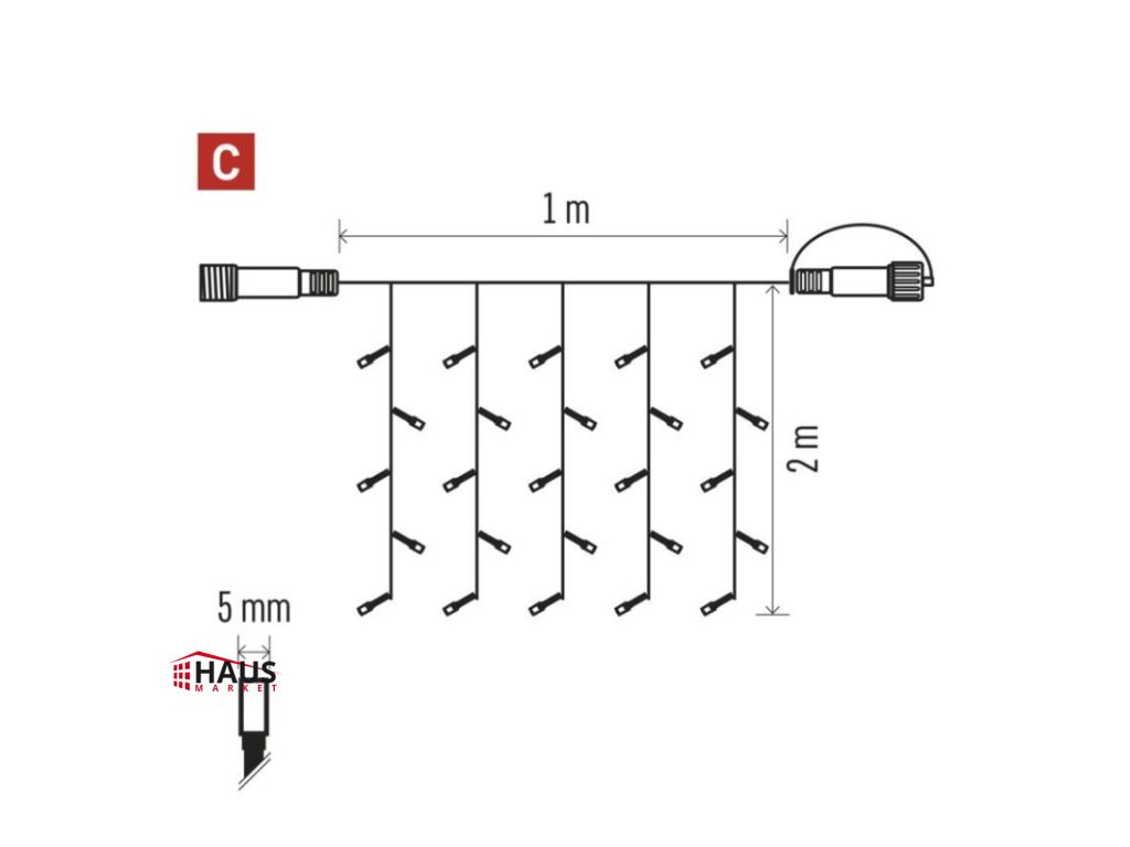 Standard LED spojovacia vianočná reťaz – záclona, 1x2 m, vonkajšia, teplá biela