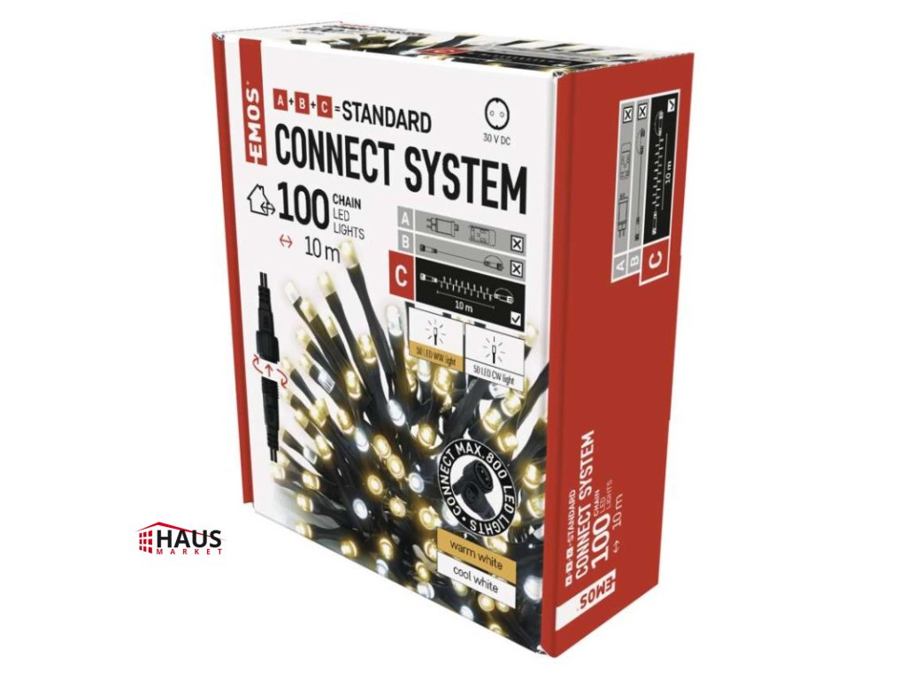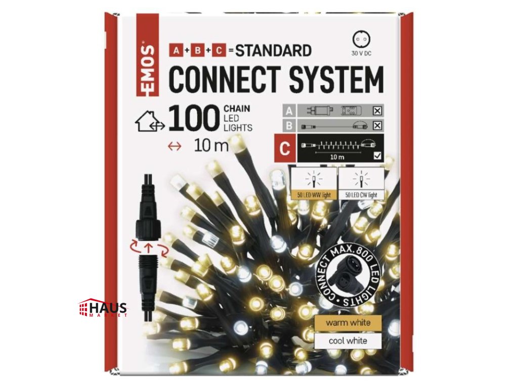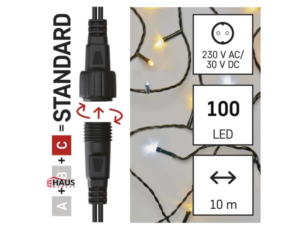 Standard LED spojovacia vianočná reťaz, 10 m, vonkajšia, teplá/studená biela