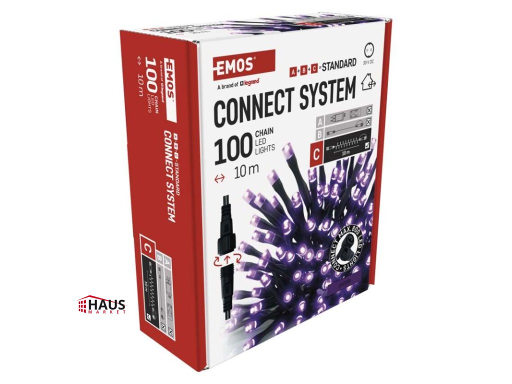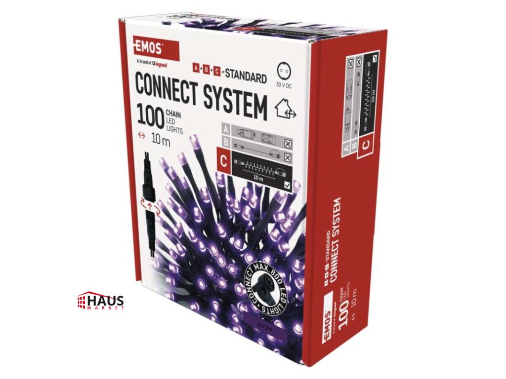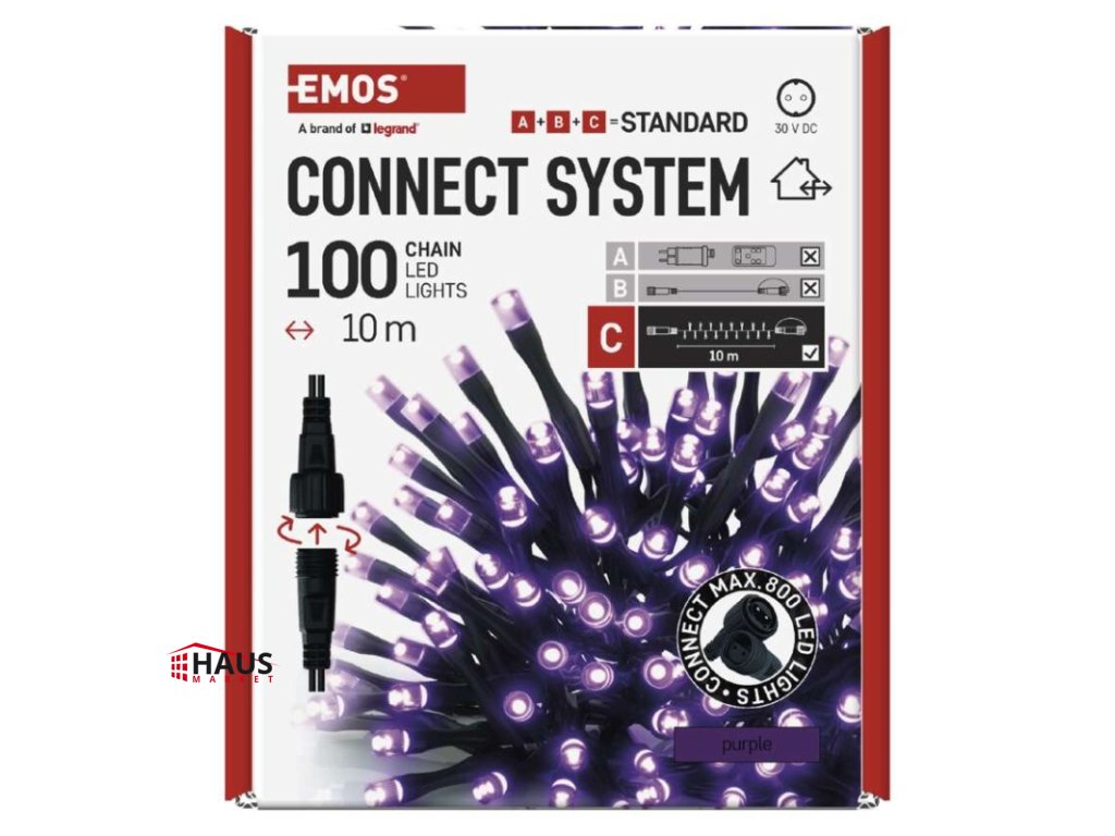 Standard LED spojovacia vianočná reťaz, 10 m, vonkajšia aj vnútorná, fialová