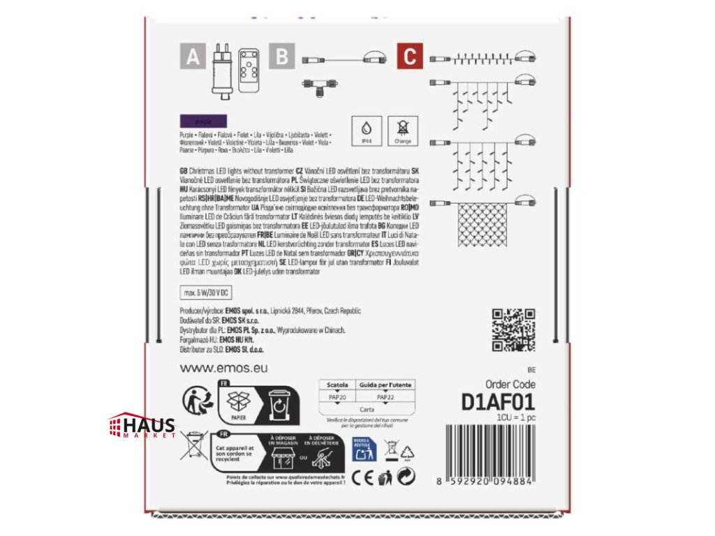 časovač: neuvádza sa|diaľkový ovládač: nie|dĺžka prívodu: 10 cm|farba drôtu: čierna|farba svetla: fialová|funkcia: svieti|krytie: IP44|LED medzera: 10 cm|materiál: PVC|možnosť prepojenia: áno|počet LED: 100|použitie: vonkajšie aj vnútorné|predajný obal: 1 ks, krabica|pre výšku stromu: neuvádza sa|príkon: max. 5 W|produkt: reťaz|rozmer: 10 m|tvar: klasický|typ napájania: sieťový adaptér (nie je súčasťou balenia)|veľkosť LED: 5 mm|vstupné napätie: 30 V DC|výstupné napätie: neuvádza sa|záručná doba: 2 roky|životnosť: 10 000 hodínDodatočné parametre