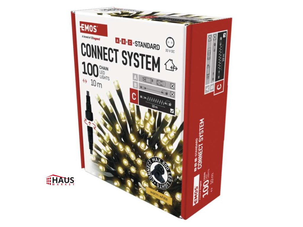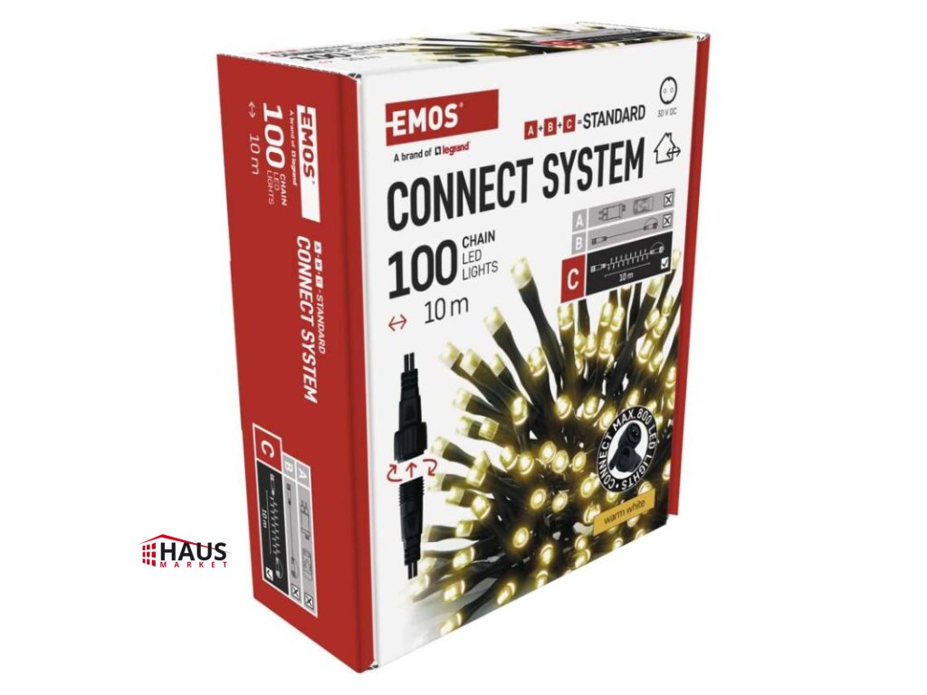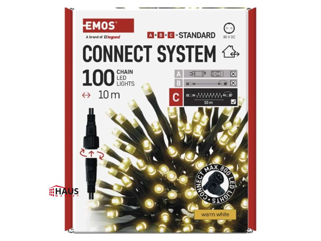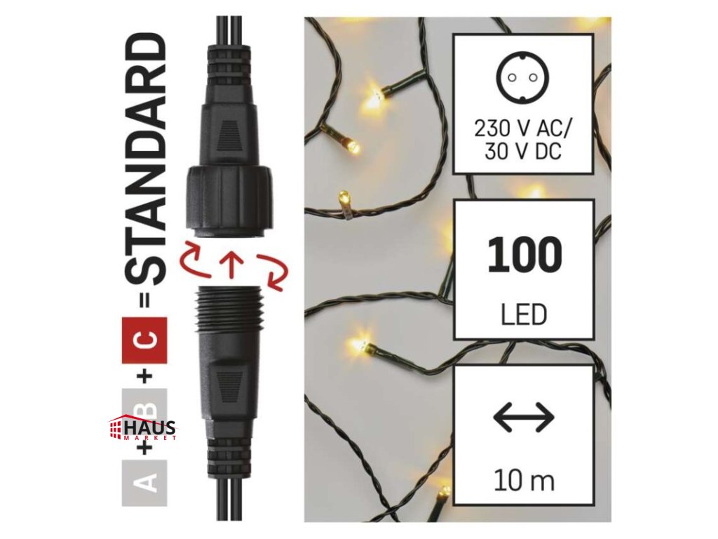 Standard LED spojovacia vianočná reťaz, 10 m, vonkajšia aj vnútorná, teplá biela