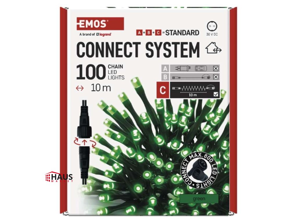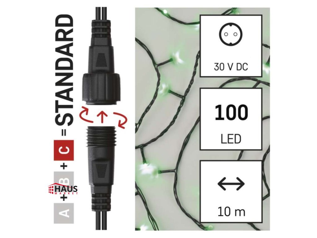 Standard LED spojovacia vianočná reťaz, 10 m, vonkajšia aj vnútorná, zelená