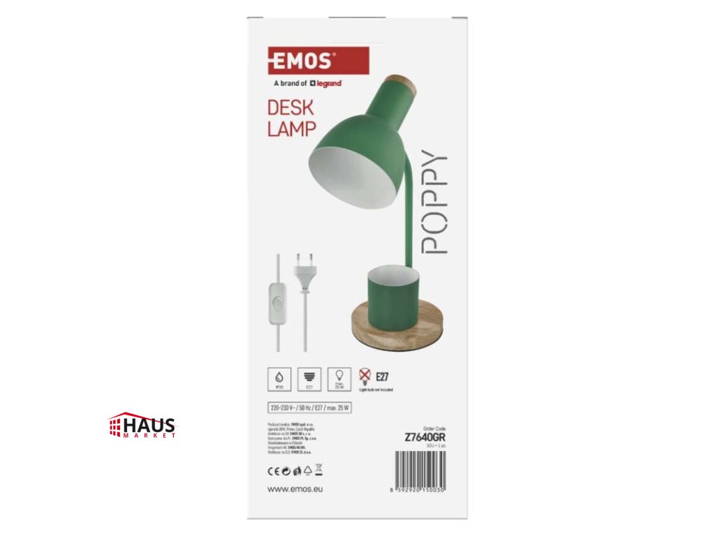 činiteľ starnutia: –|čip LED: –|dĺžka prívodného kábla: 1,5 m|energetická trieda: –|energetická trieda (od 1.9.2021): –|farba: zelená|farba svetla: –|index podania farieb (CRI): –|integrovaná nabíjacia batéria: nie|krytie: IP20|materiál: kov + drevo|max. výkon: 25 W|napájacie trafo: 220–230 V|napájací zdroj súčasťou balenia: –|napätie: 220–230 V AC|obsah ortuti: –|pätica (uchytenie žiarovky): E27|počet LED: 0|počet spínacích cyklov: 10 000|predajný obal: 1 ks, krabica|príkon: 25 W|rozmer: 150 × 150 × 400 mm|rýchlosť nábehu na 100 %: –|stmievanie: nie|svetelný tok: –|teplota chromatičnosti: –|typ napájania: sieť|účinník: –|USB port: nie|životnosť: –Dodatočné parametre