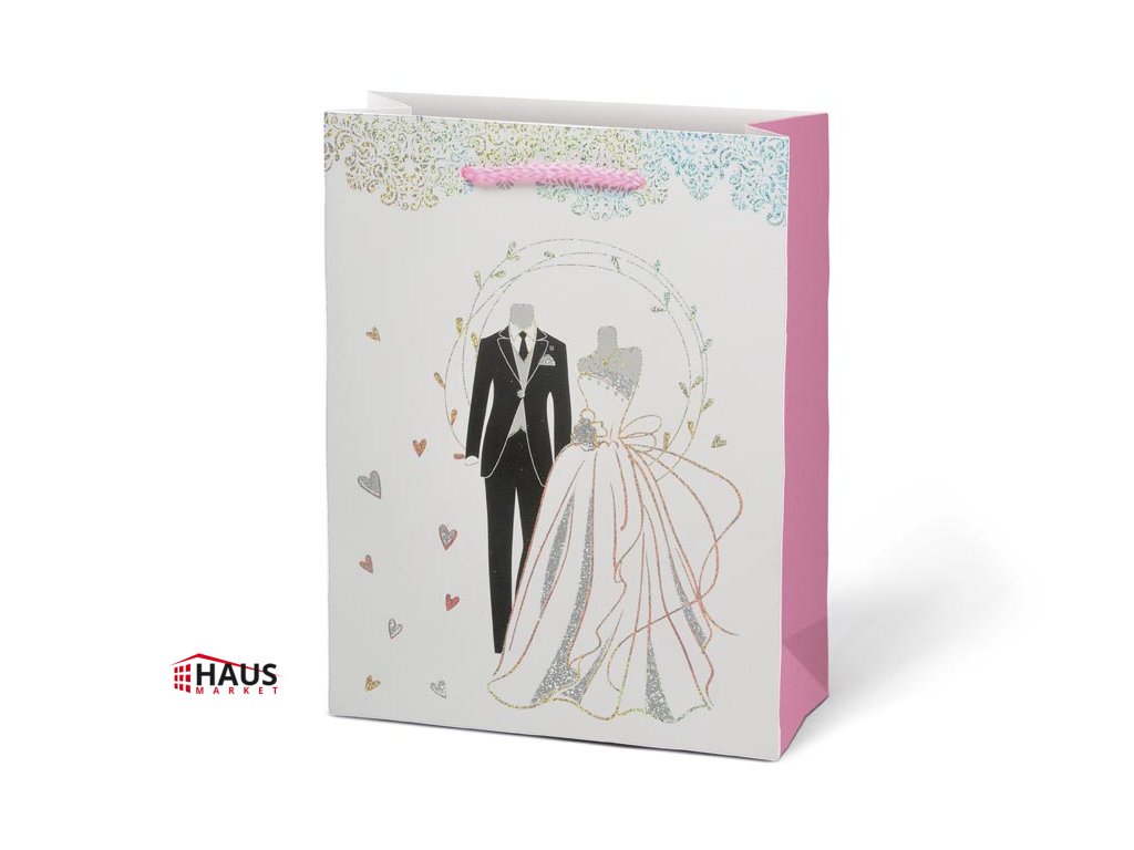 Darčeková, papierová taška M LUX so svadobným motívom. Ideálne pre reprezentatívne odovzdanie svadobného daru. Darčekové tašky sú skvelé na darčeky, ktoré je možné len ťažko zabaliť do baliaceho papiera. Veľmi praktické sú aj pre tých, čo darčeky neradi balia alebo to veľmi nevedia a neboli by spokojní so svojim výsledkom. Motív: svadobný Rozmer: 180 x 230 x 80 mm Dodávame v mixe 4 ks podľa skladovej zásoby. Uvedená cena je za 1 ks.Dodatočné parametre