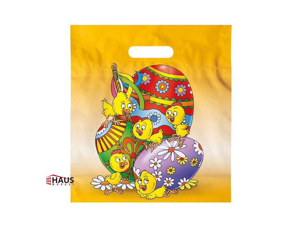 Igelitová taška s prehmatom a veľkonočným motívom kuriatok a veľkonočných vajíčok. Ideálna pre vytváranie čokoládových balíčkov pre deti! Tlač: 4 + 0cmyk Materiál: Polyetylén Hrúbka materiálu: 0,045 my Rozmer: 295 x 320 x 80 mm Uvedená cena je za 1 ks.Dodatočné parametre