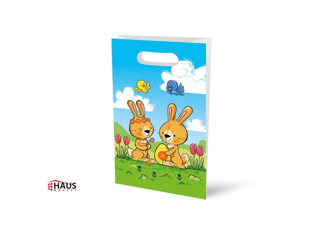 Veľkonočná papierová taška s potlačou veľkonočných zajačikov. Ideálna na vytváranie čokoládových balíčkov pre deti. Materiál: papier Uvedená cena je za 1 ks.Dodatočné parametre