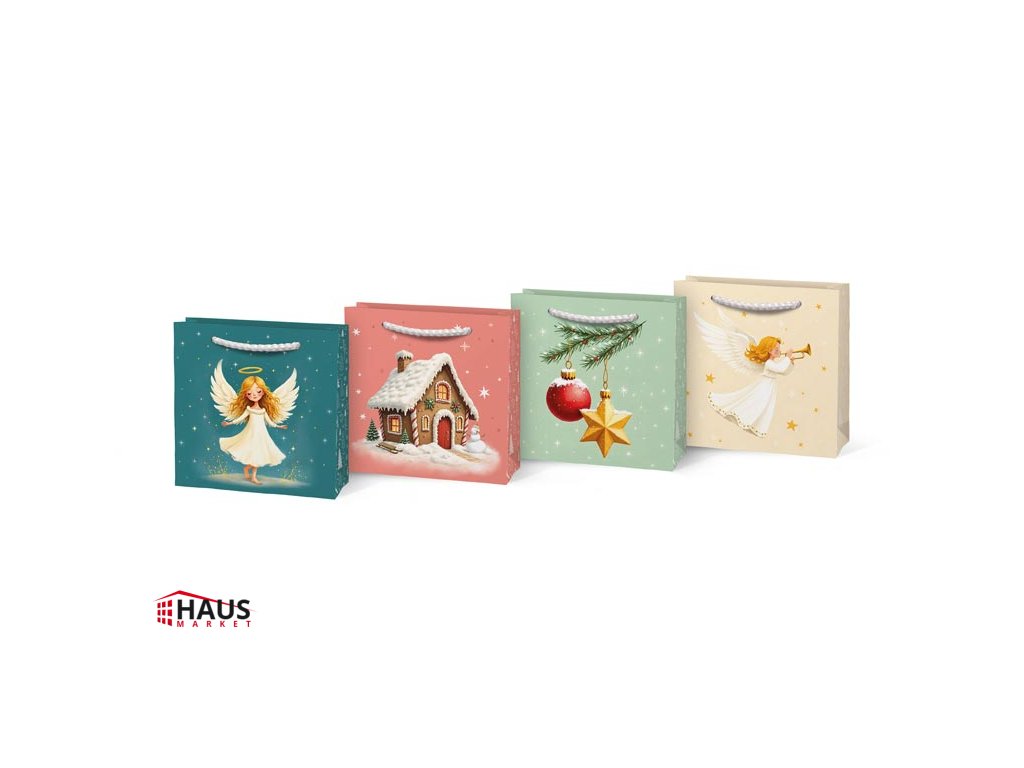 Krásne balenie pre sviatočné okamihy! Darčeková papierová taška T0 s čarovným vianočným motívom – ideálna na drobné darčeky, šperky, priania alebo malú pozornosť od srdca. Ilustrácie anjelikov, vianočných ozdôb a zasneženej chalúpky vytvárajú tú pravú sviatočnú atmosféru. Vďaka malému formátu pôsobí taška milo a osobne – ako drobná pozornosť, ktorá poteší ešte pred rozbalením. Taška je doplnená bielymi šnúrkovými ušami, ktoré sú praktické a ladia s celkovým vzhľadom. Skvelá voľba na sviatočné balenie drobných darčekov s vianočnou náladou. Rozmery: 90 × 90 × 40 mm Farba: petrolejová, lososová, svetlozelená, béžová Motív: vianočný – anjeli, zimná chalúpka, ozdoby a sviatočné dekorácie Dodávame v mixe 4 motívov podľa aktuálnej skladovej dostupnosti. Uvedená cena je za 1 ks.Dodatočné parametre