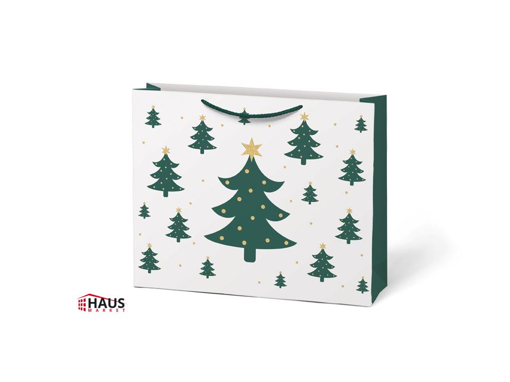 Vianočná, darčeková, papierová taška T6. Je ideálna na darovanie darčekov a skvelým pomocníkom, keď je ťažké zabaliť darček do darčekového baliaceho papiera. Vrecko má pevnú rukoväť. MOTÍV: - vianočný stromček - darček Rozmery: 250 x 190 x 90 mm Dodávame v mixe 4 ks podľa skladových zásob. Uvedená cena je za 1 ks.Dodatočné parametre