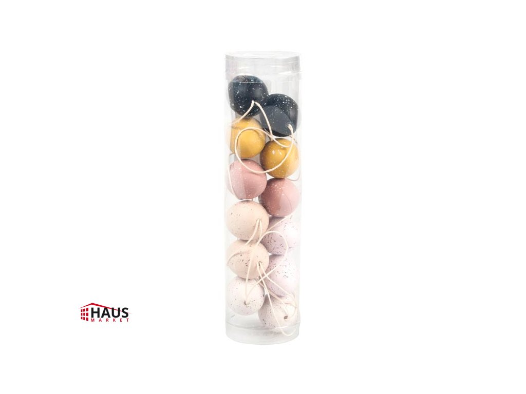Plastové vajíčka kropenaté v rôznych farbách na zavesenie. Krásna dekorácia veľkonočných vajíčok so zavesením, slúži ako dekorácia do exteriéru alebo interiéru. Dekorácia má šnúrku na zavesenie. Vajíčka sú uložené v plastovom valci. Nalaďte sa s nami na Veľkú noc! Balenie obsahuje: - 12 ks dekorácií (vajíčka) Veľkosť: 4 cm Uvedená cena je za 1 balenie.Dodatočné parametre