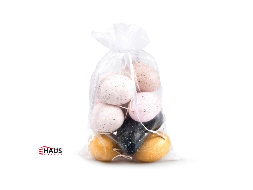 Plastové vajíčka kropenaté v rôznych farbách na zavesenie. Krásna dekorácia veľkonočných vajíčok so zavesením, slúži ako dekorácia do exteriéru alebo interiéru. Dekorácia má šnúrku na zavesenie. Vajíčka sú uložené v sťahovacom sáčku z organzy. Nalaďte sa s nami na Veľkú noc! Balenie obsahuje: - 12 dekorácií (vajíčok) Veľkosť: 6 cm Dodávame v sáčku z organzy. Uvedená cena je za 1 balenie.Dodatočné parametre