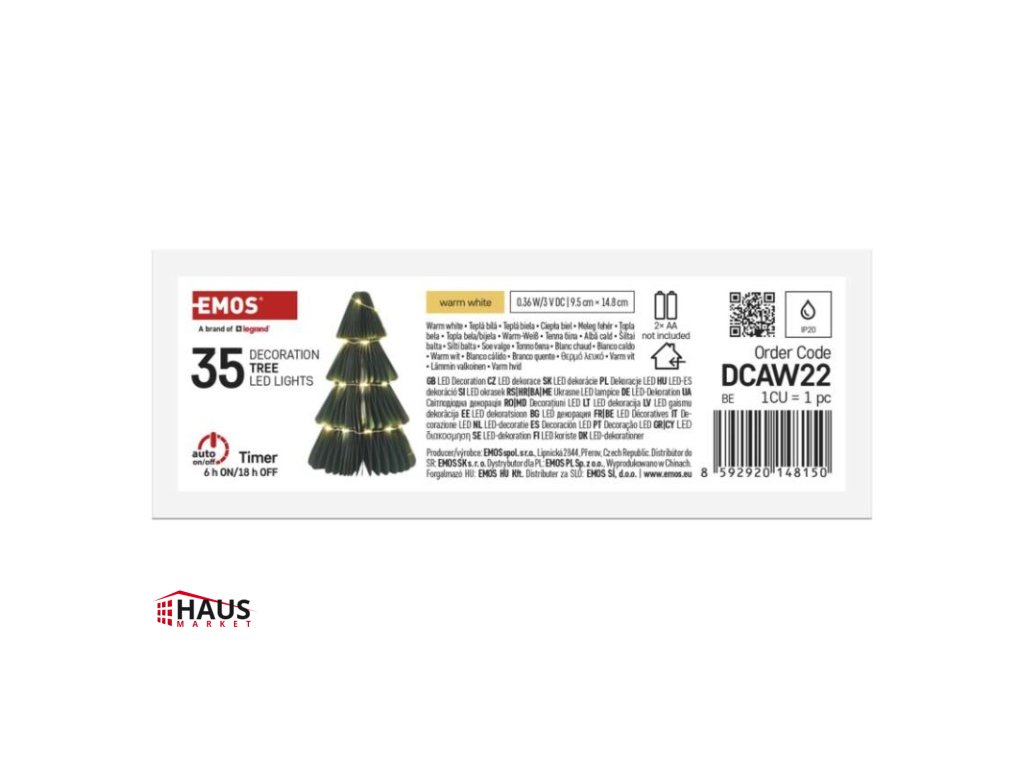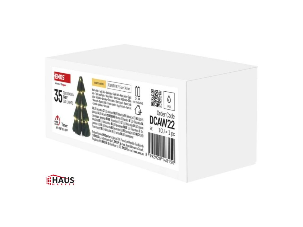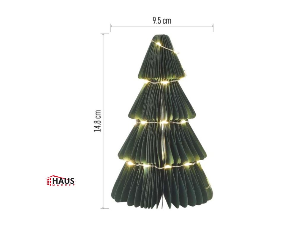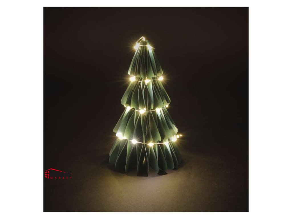 časovač: áno|diaľkový ovládač: nie|dĺžka prívodu: 0,3 m|farba drôtu: strieborná|farba svetla: teplá biela|krytie: IP20|materiál: papier|počet LED: 35|použitie: vnútorné|predajný obal: 1 ks, krabica|príkon: 0,36 W|produkt: stromček|rozmer: 9,5 × 9,5 × 14,8 cm|typ napájania: batéria 2× AA (nie je súčasťou balenia)|vstupné napätie: –|výstupné napätie: 3 V DC|záručná doba: 2 roky|zdroj svetla: LED|životnosť: 10 000 hodínDodatočné parametre