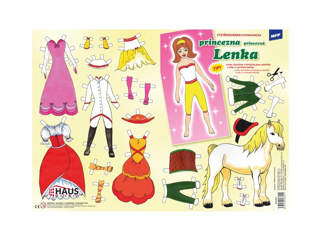 Vystrihovačky s princeznou Lenkou, vhodné pre mladé slečny. Obleč si princeznú Lenku podľa svojho vlastného vkusu. Vystrihovačky sú na 2 listoch formátu A4. Nájdeš tu princeznú, koníka a množstvo rôznych šiat a doplnkov. Vystrihovačky rozvíjajú kreativitu detí pomocou rôznych tvarov, farieb a taktiež zlepšujú motoriku ruky. NÁVOD: 1. Podľa obrysu si vystrihni princeznú a oblečky. 2. Vyber si ten správny obleček a pomocou bielych prúžkov ho zahni okolo siluety princeznej (biele prúžky slúžia k záhybu). 3. Oblečky môžeš jednoducho meniť, kedy sa ti zachce. Papier: 235g + lamino VAROVANIE: Nevhodné pre deti do 3 rokov. Nebezpečenstvo vdýchnutia a prehltnutia malých častíc. Uvedená cena je za 1 ks.Dodatočné parametre