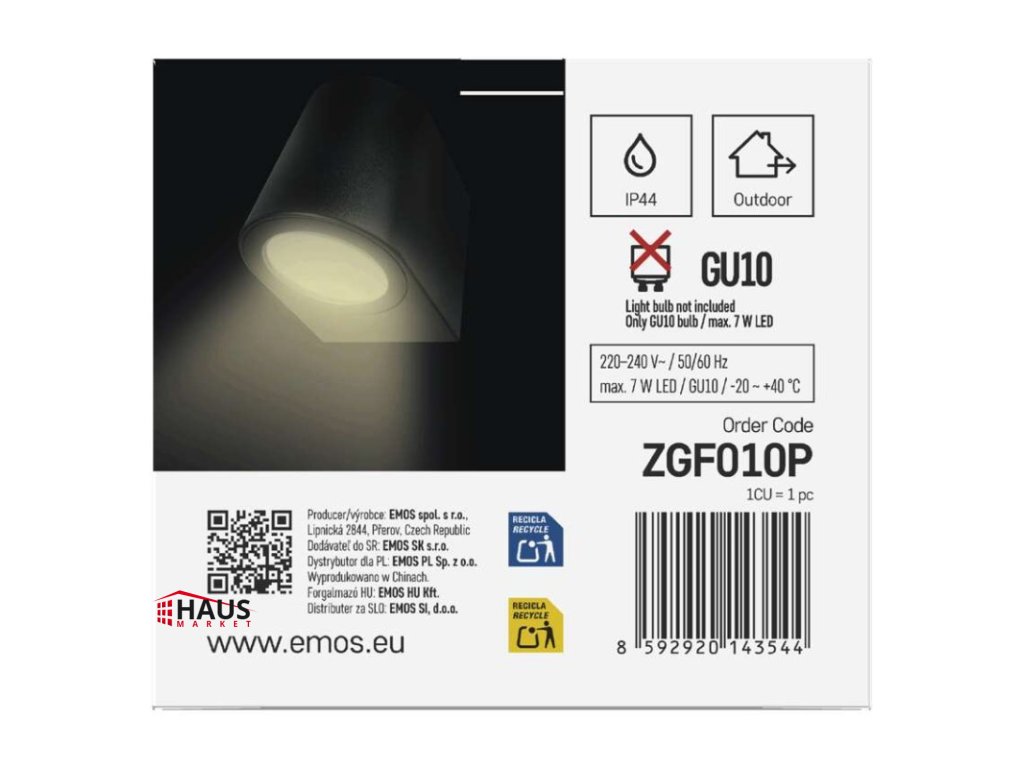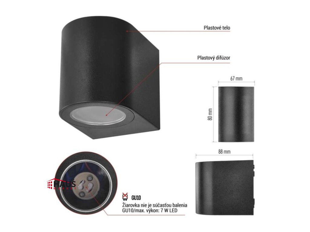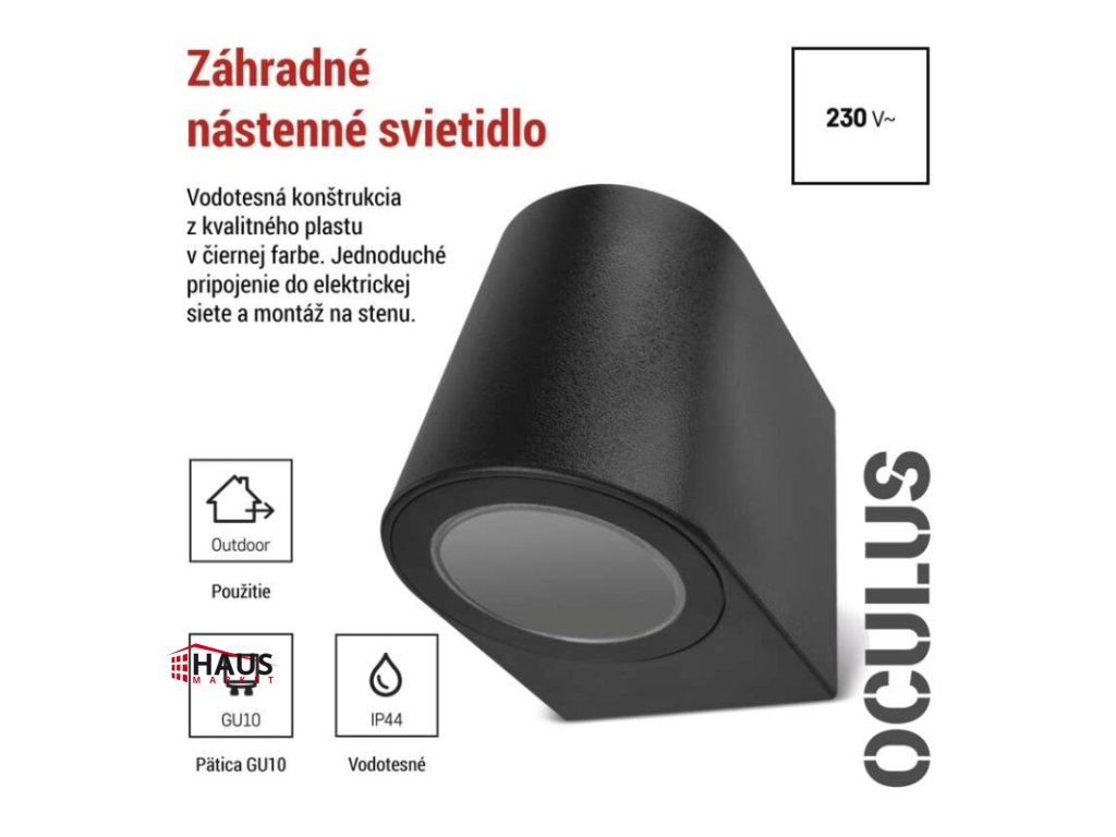 energetická trieda použitého zdroja svetla: –|farba: čierna|farba svetla: –|fotovoltaický článok: nie|frekvencia: 50/60 Hz|index podania farieb (CRI): –|kategória: CLASSIC|krytie: IP44|materiál: plast|materiál difúzora: plast|napájanie: 230 V AC|napätie: 220-240 V~|pätica (uchytenie žiarovky): GU10|predajný obal: 1 ks, krabička|príkon: –|rada: OCULUS|rozmer: 88 × 67 × 80 mm|rozsah pracovnej teploty: -20 ~ +40 °C|Rozsah snímača PIR: –|senzor PIR: Nie|súmrakový spínač: nie|svetelný tok: –|teplota chromatičnosti: –|vstavaný vypínač: nie|zdroj svetla: –|žiarovka súčasťou balenia: nie|životnosť: –Dodatočné parametre