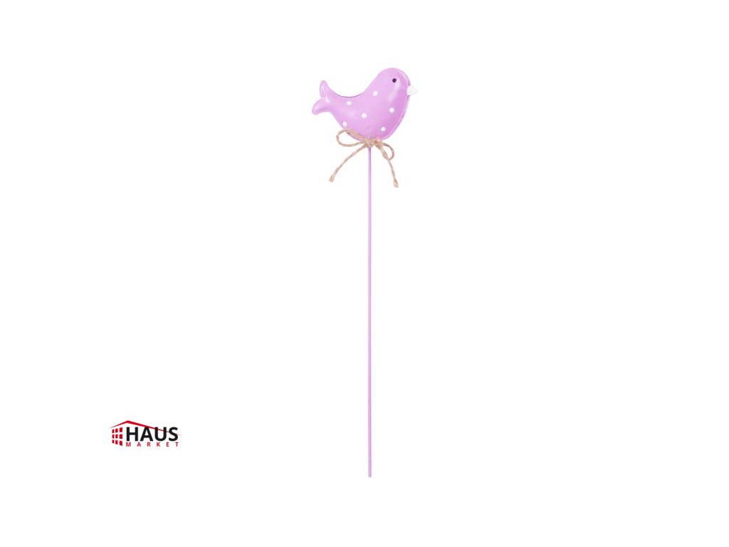 Veľkonočná dekorácia, zápich plechový vtáčik fialovej farby s bielymi bodkami. Dekorácia je zdobená jutovou mašľou. Je vhodná na jarné dekorácie alebo do kvetináčov. Farba: fialová Materiál: plech Celková dĺžka kolíka: 290 mm Uvedená cena je za 1 ks.Dodatočné parametre