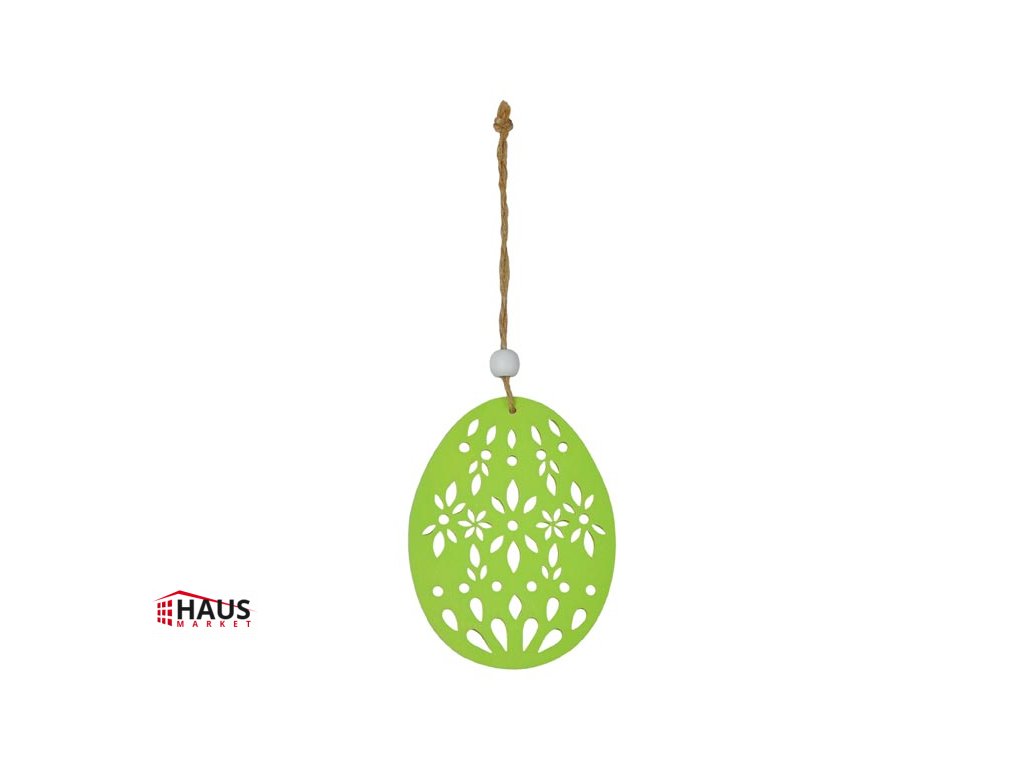 Veľkonočné drevené, dekoračné vajíčko v zelenej farbe so závesom. Táto dekorácia je ideálnym doplnkom interiéru, prinesie domov veľkonočnú náladu. Dekorácia má šnúrku na zavesenie. Farba: zelená Rozmery: 90 mm Uvedená cena je za 1 ks.Dodatočné parametre