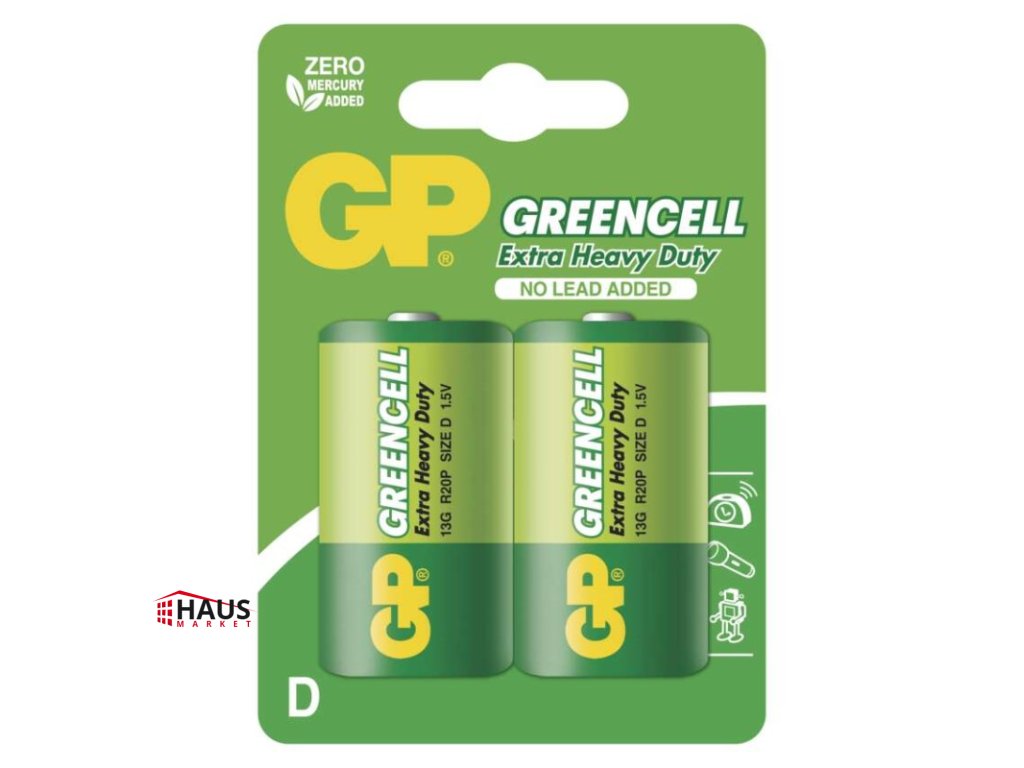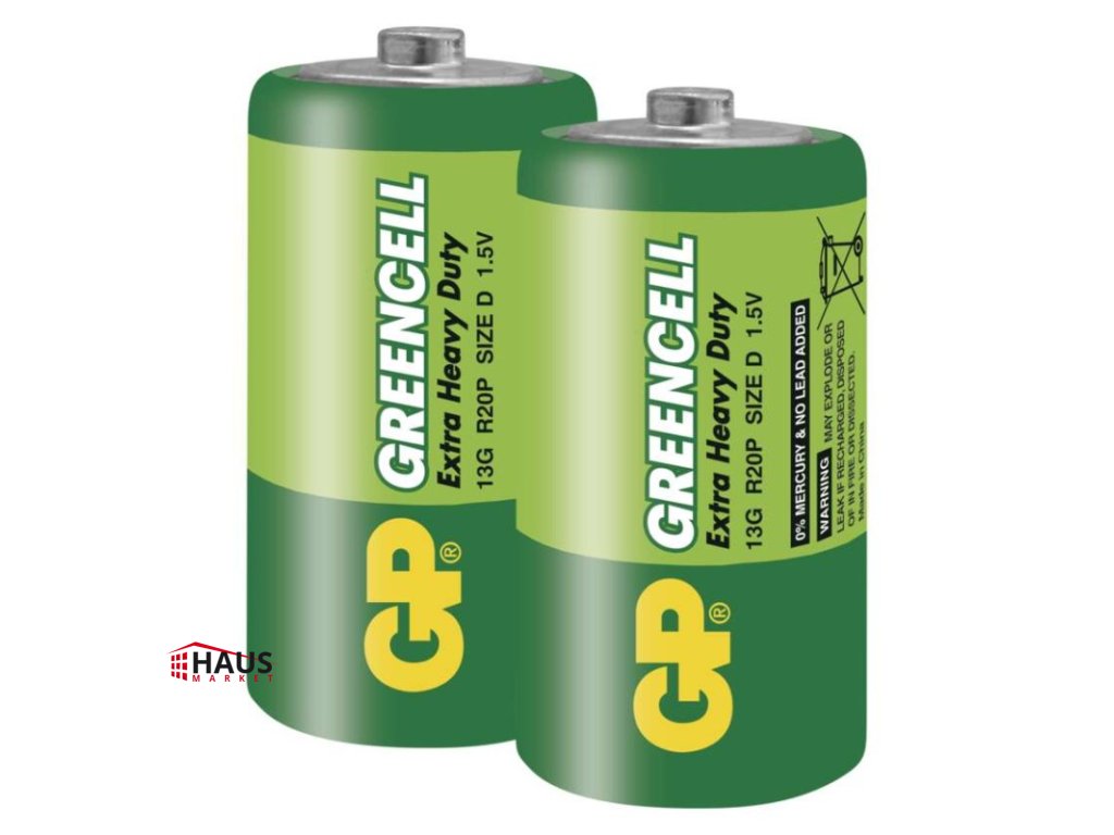 chemické zloženie: zink-chloridové|hmotnosť: 97 g|kapacita: neuvádza sa|kategória/rada: Greencell|max. skladovateľnosť: 3 roky|možnosť nabíjania: nie|napätie: 1,5 V|počet nabíjacích cyklov: nenabíjacie|predajný obal: 2 ks, blister|prevádzková teplota: 0 °C až +45 °C|rozmer: 34,2 × 61,5 mm|typové označenie: R20 (veľké mono, D)|veľkosť batérie: D|značka: GPDodatočné parametre