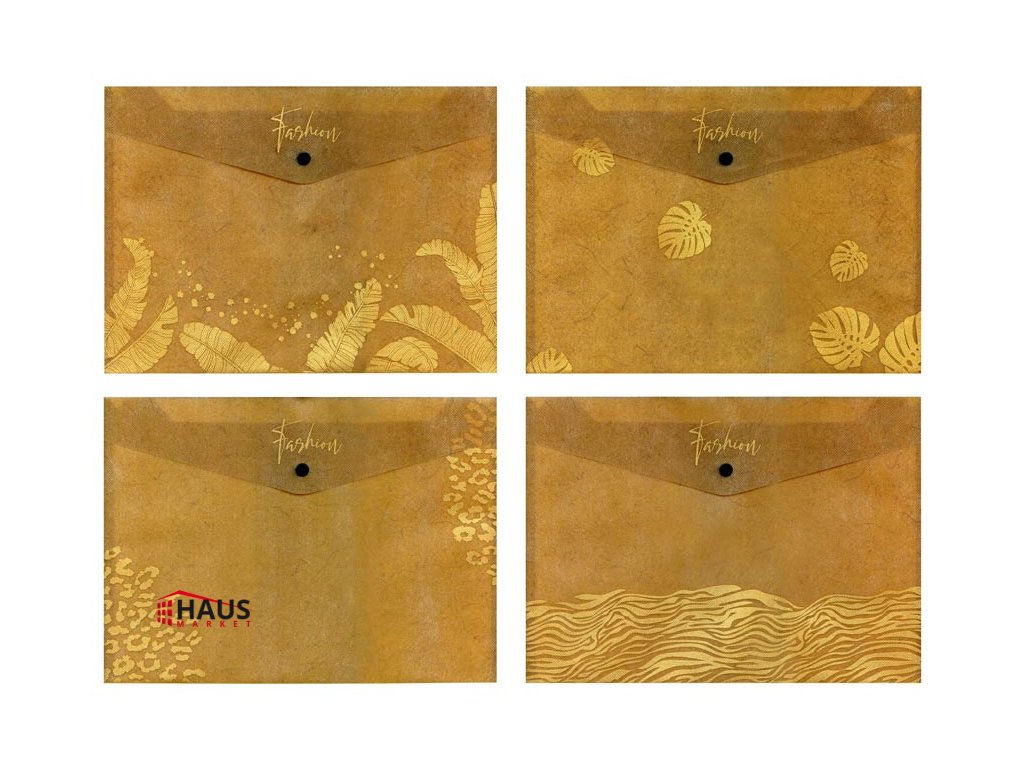 Zložka A4 z PolyPropylénu (PP), ktorá sa zatvára pomocou cvoku, v zlatom dizajne. Zložka slúži ako pomocník na triedenie a ukladanie dokumentov, takže ich budete mať vždy pohromade. MATERIÁL: PP FARBA: hnedá SILA MATERIÁLU: 0,21 mm Dodávame v mixe po 4 ks podľa skladovej zásoby. Uvedená cena je za 1 ks.Dodatočné parametre